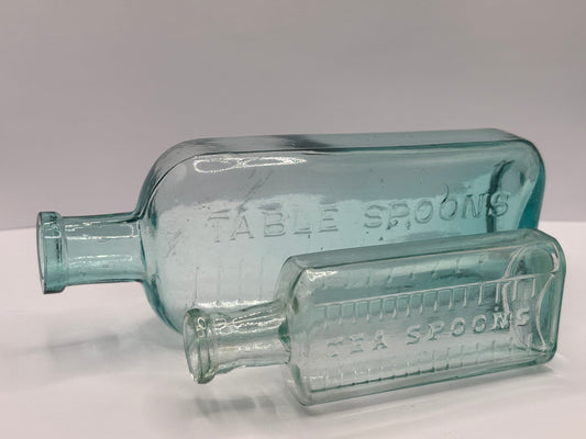2 old aqua glass tablespoon & teaspoon bottles
