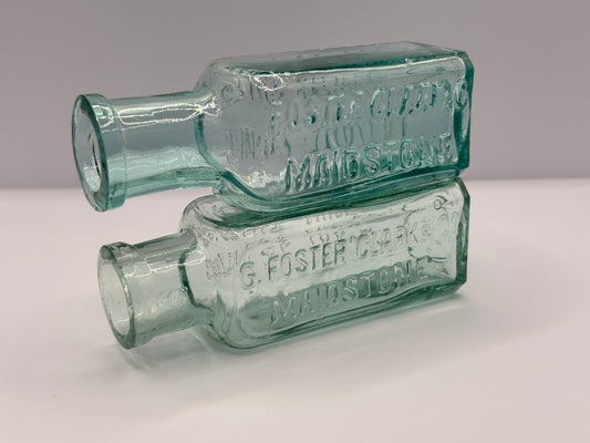 2 old aqua glass chemist bottles