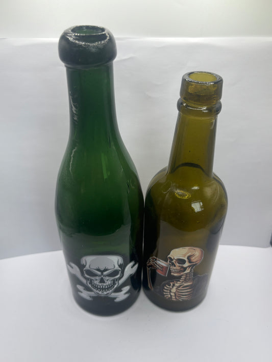 2 labelled halloween bottles