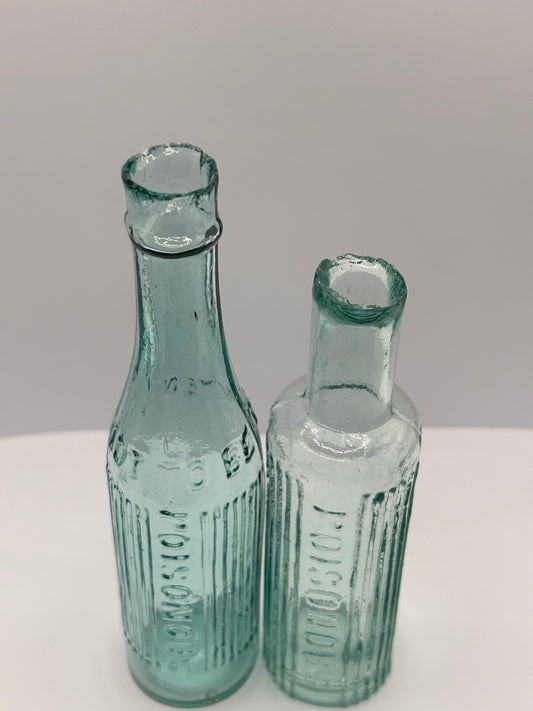 2 Old aqua glass poison bottles, Poisonous not to be taken