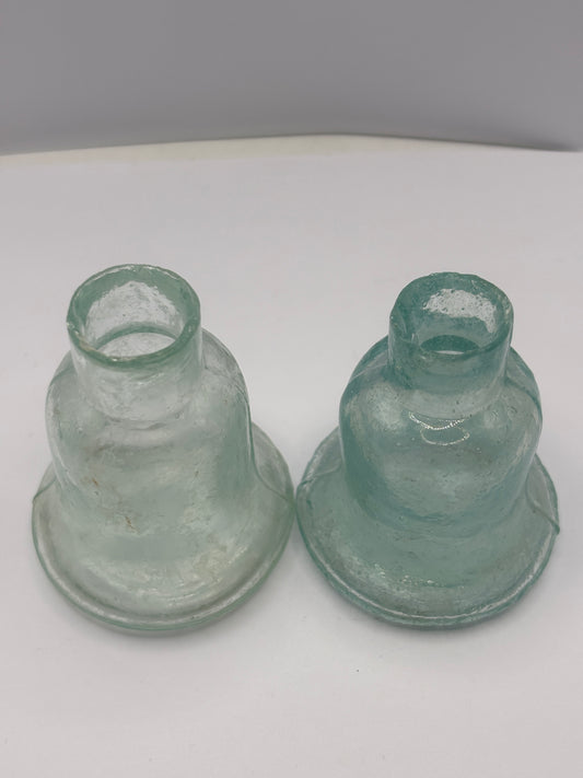 2 old aqua glass bell inks. inkwells. Ink bottles