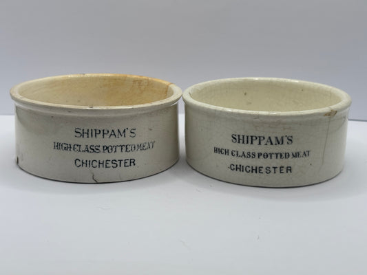2 old advertising meat paste pots, Shippams