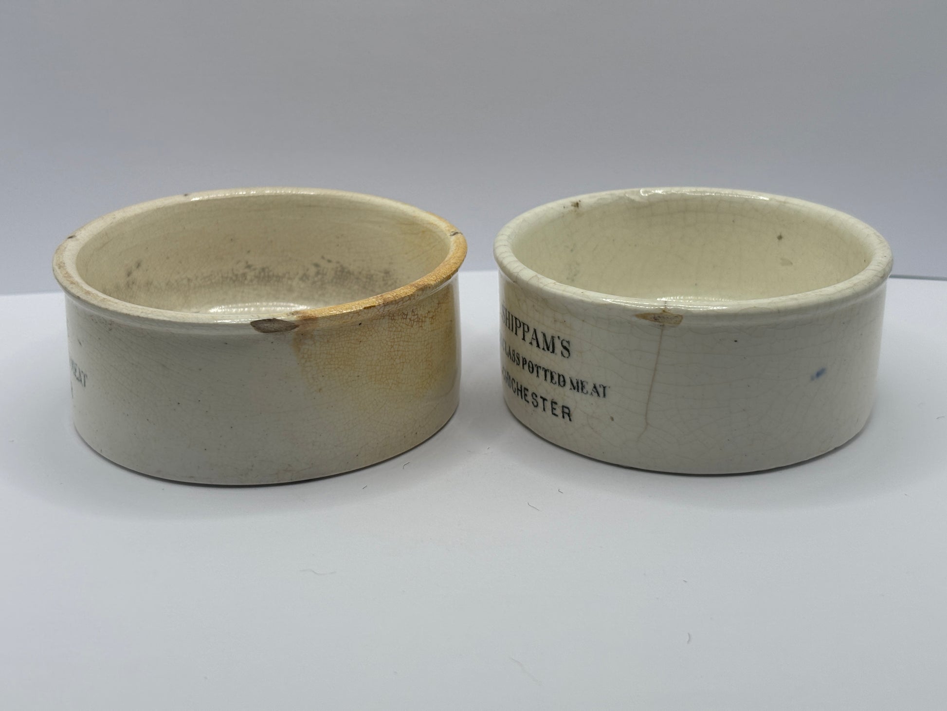 2 old advertising meat paste pots, Shippams