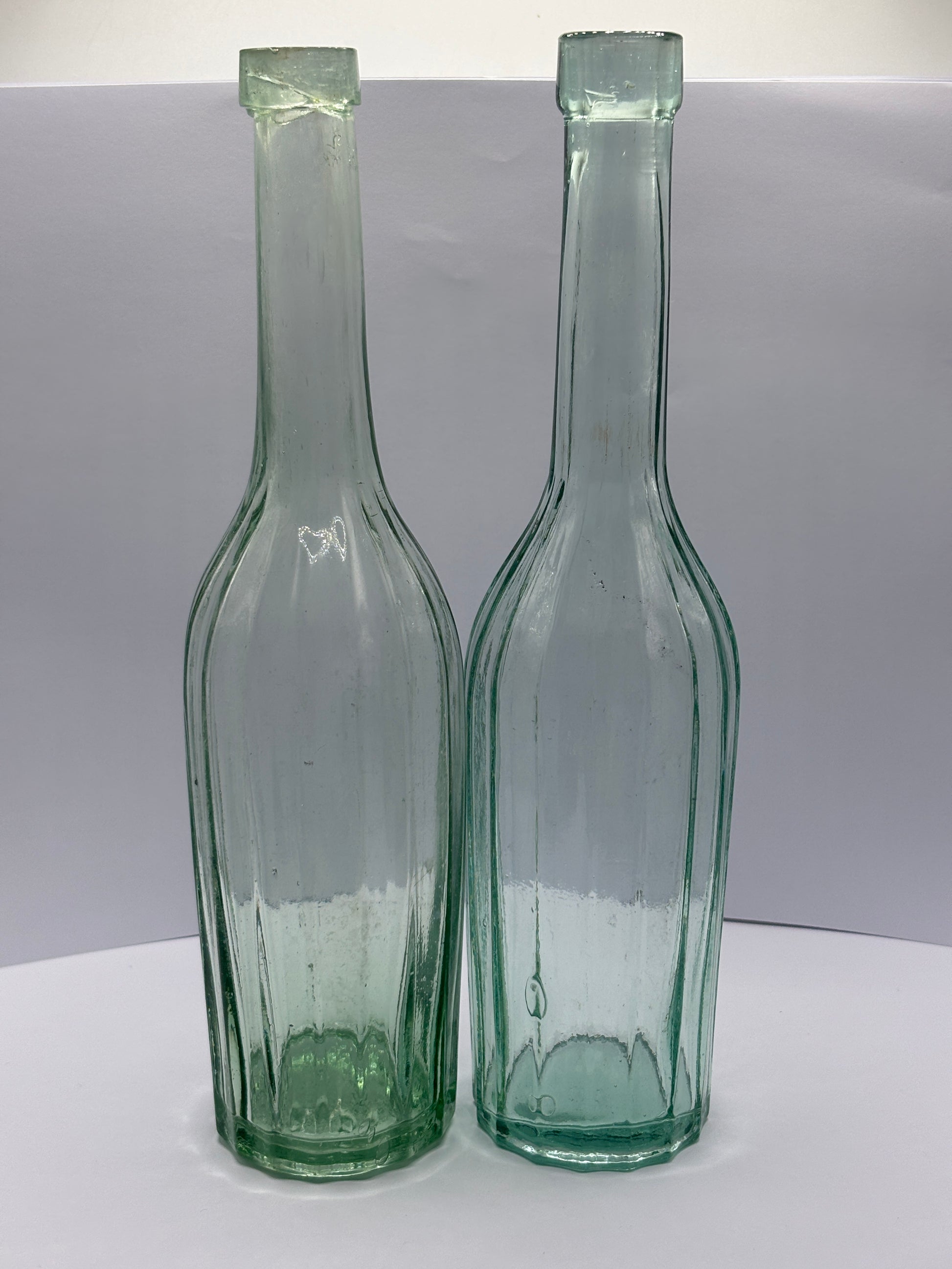 2 old aqua glass chemist bottles