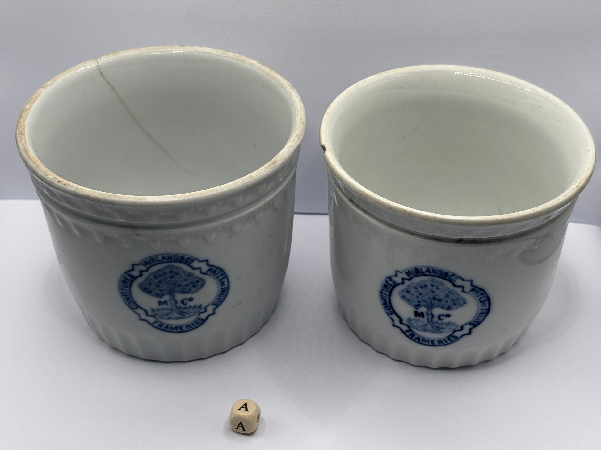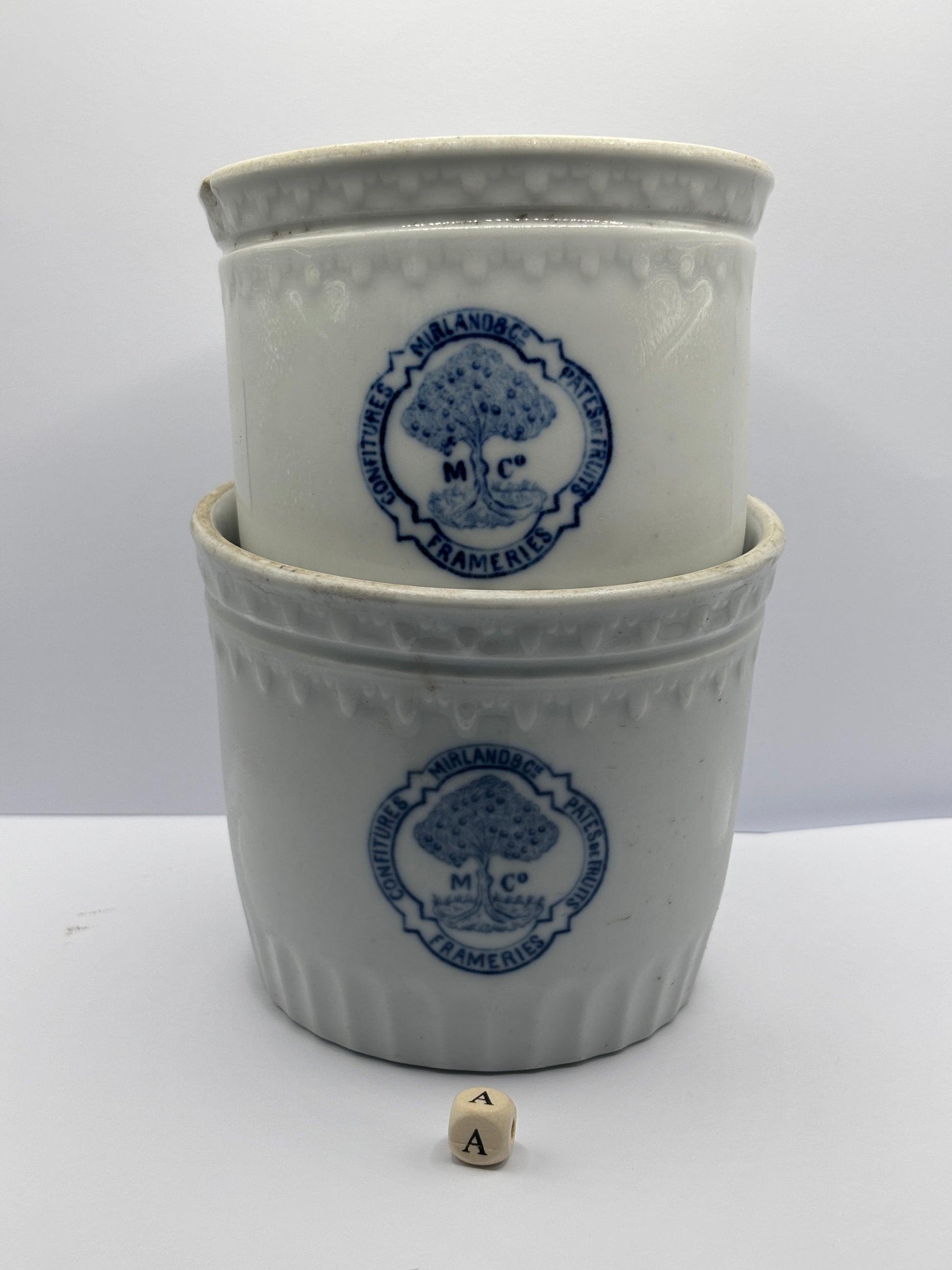 2 Old belgian stoneware jam/ preserve pots damaged (A)
