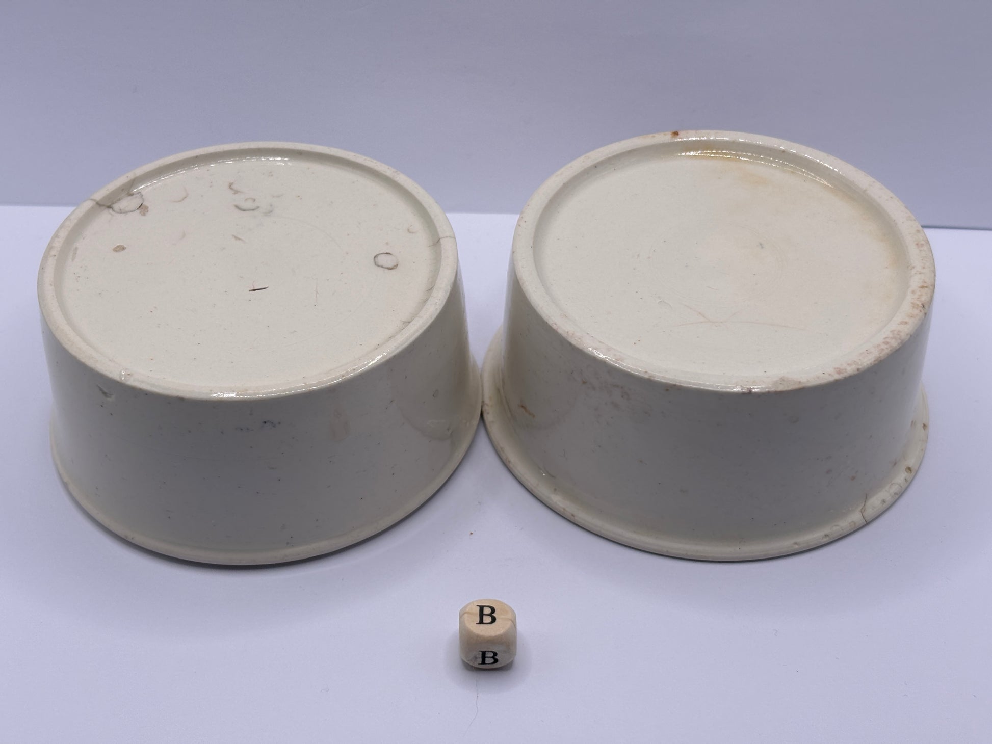 2 old potted meat advertising pots. Meat paste. Damaged (B)