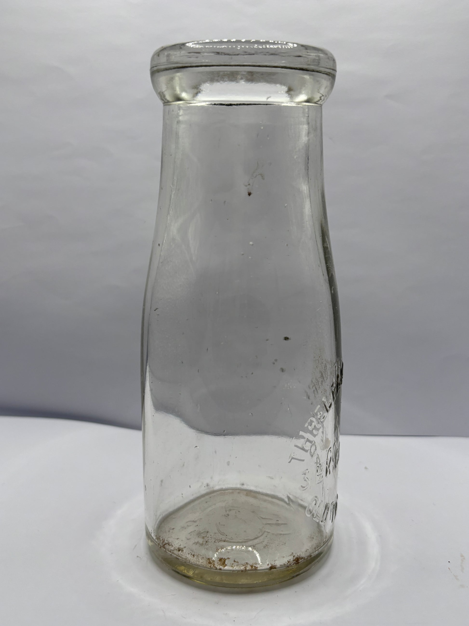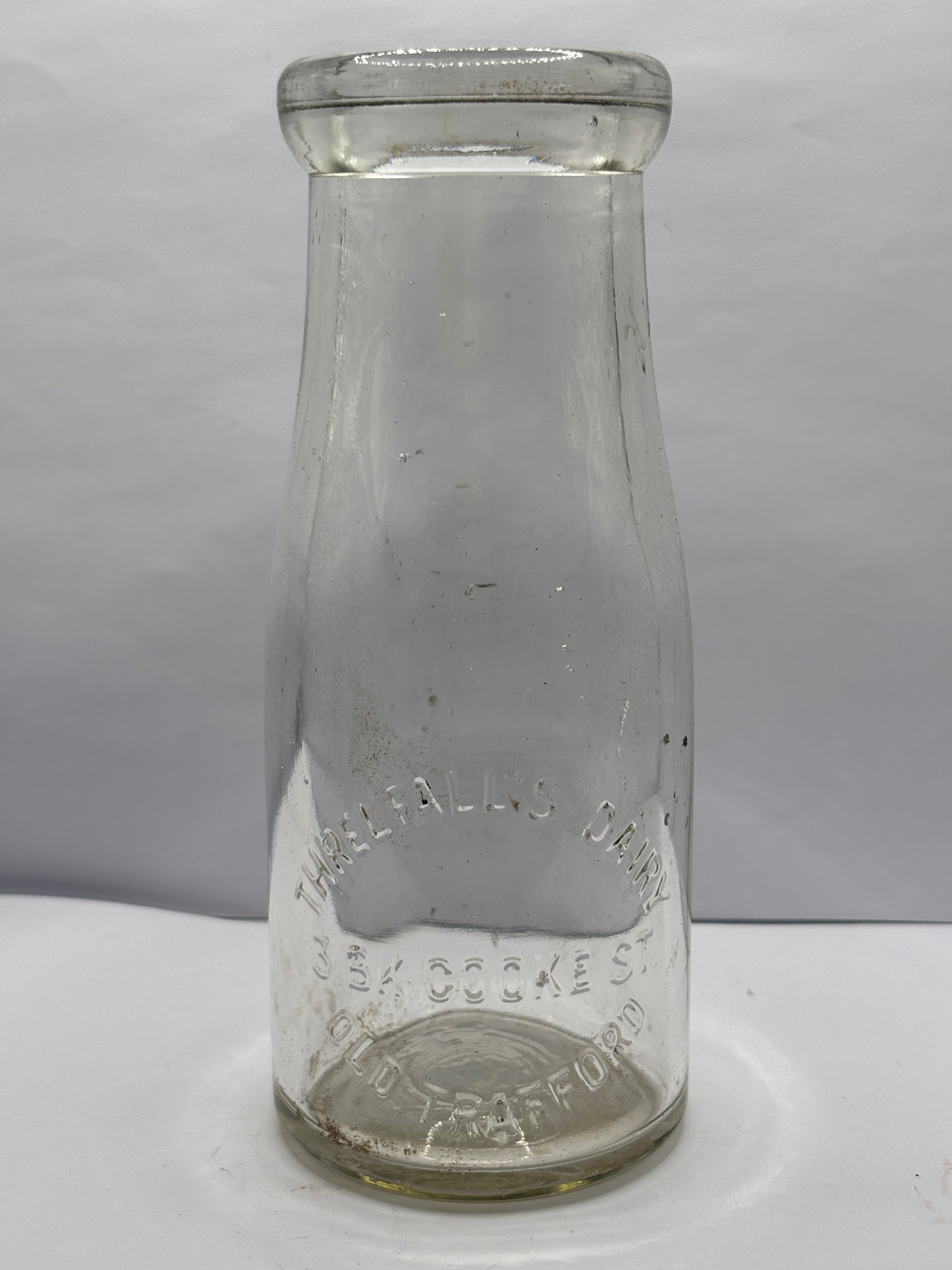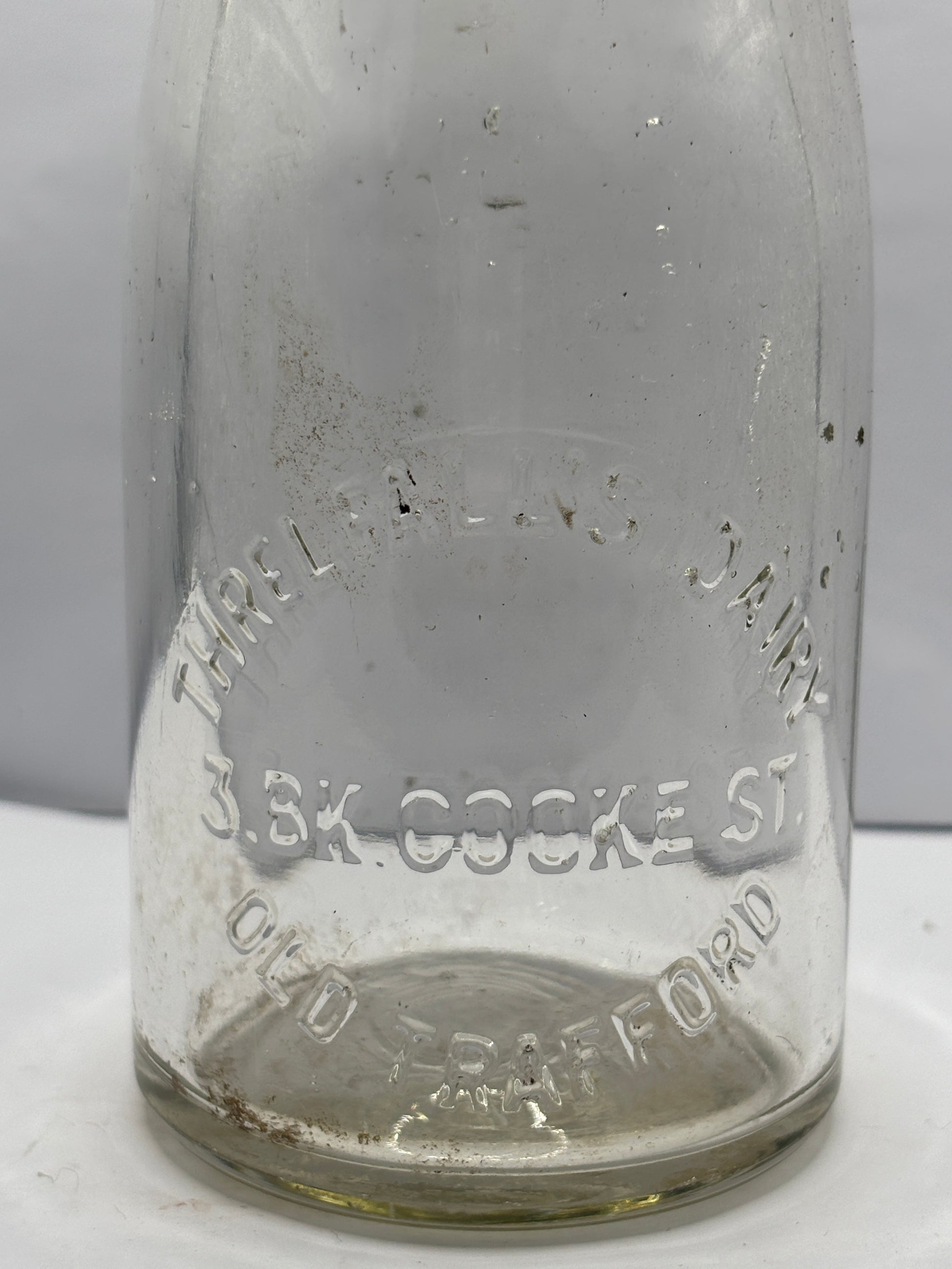 Advertising milk bottle, Threlfalls dairy Old Trafford