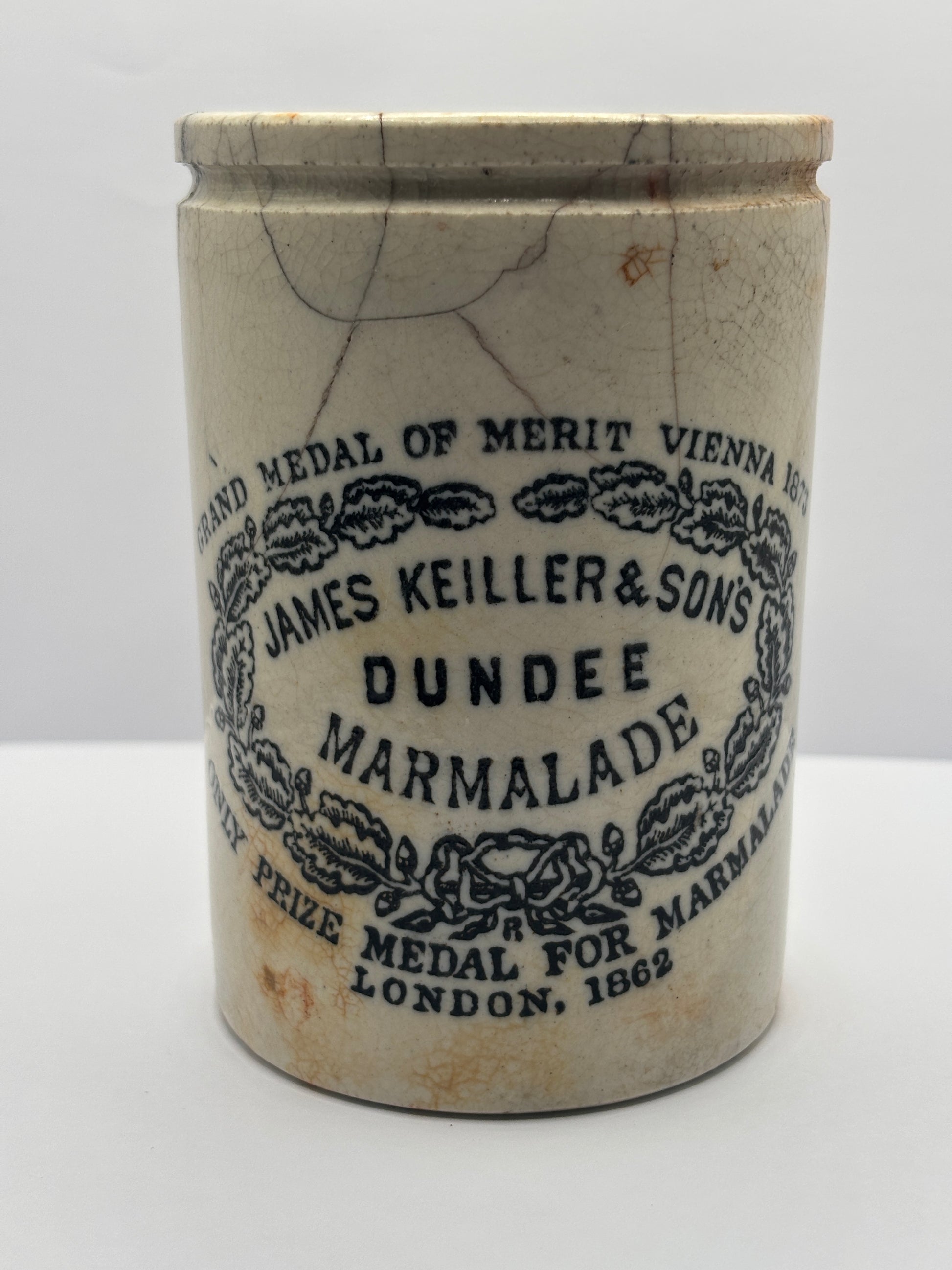 Old 1lb James Keiller Dundee marmalade jar. Damaged