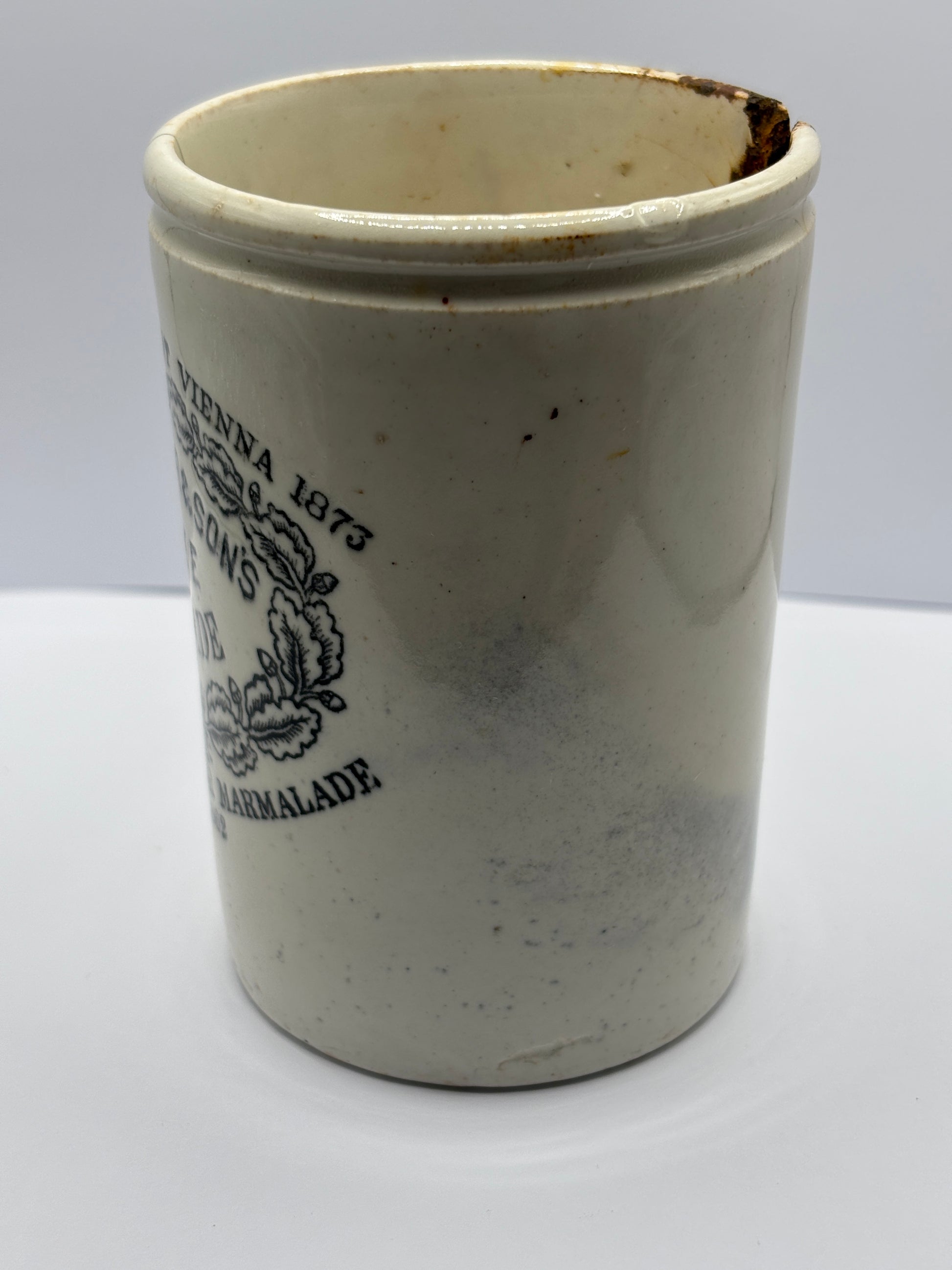 Old 1lb James Keiller Dundee marmalade jar. Damaged