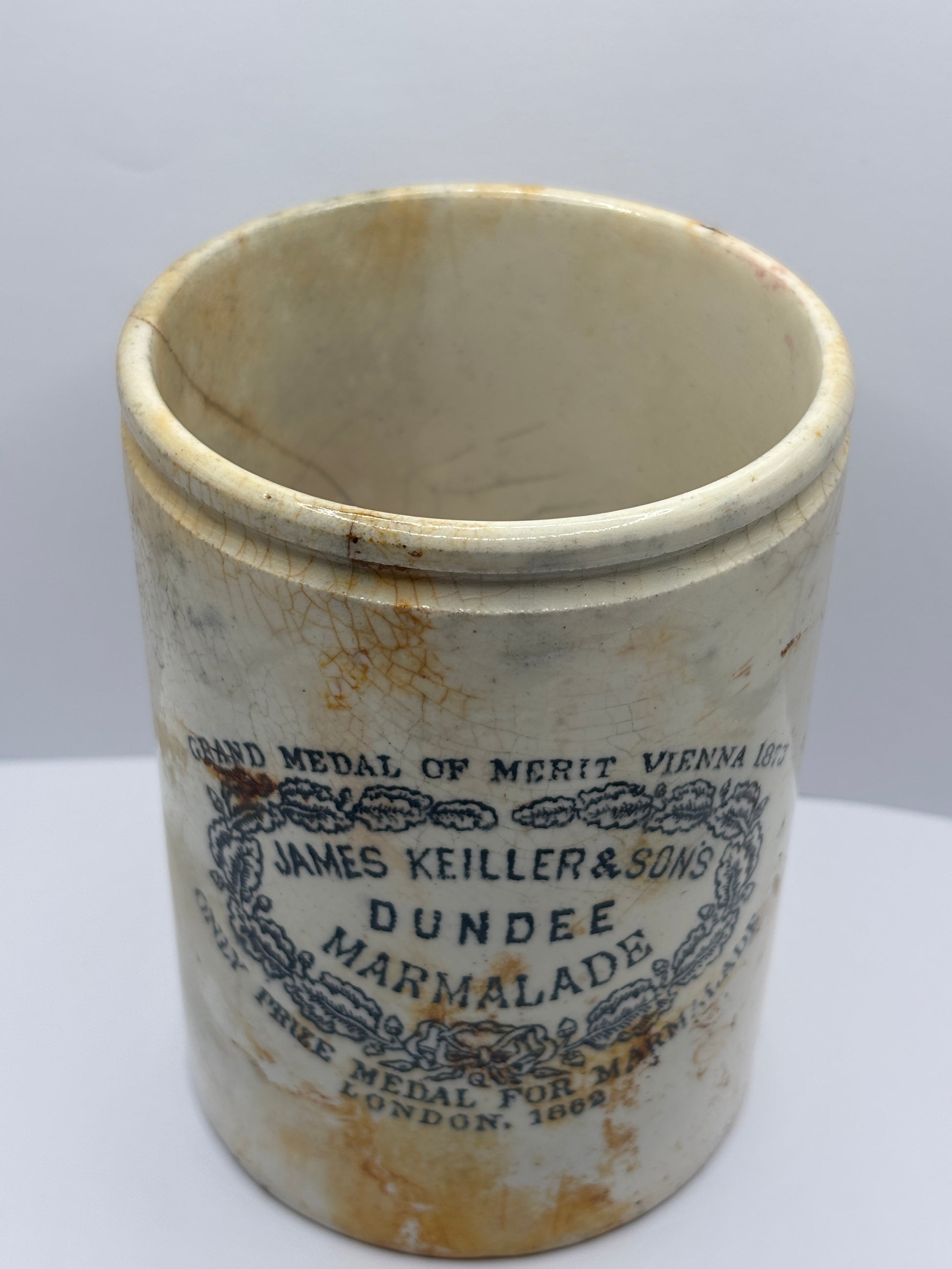 Old 2lb James Keiller Dundee marmalade jar. Damaged