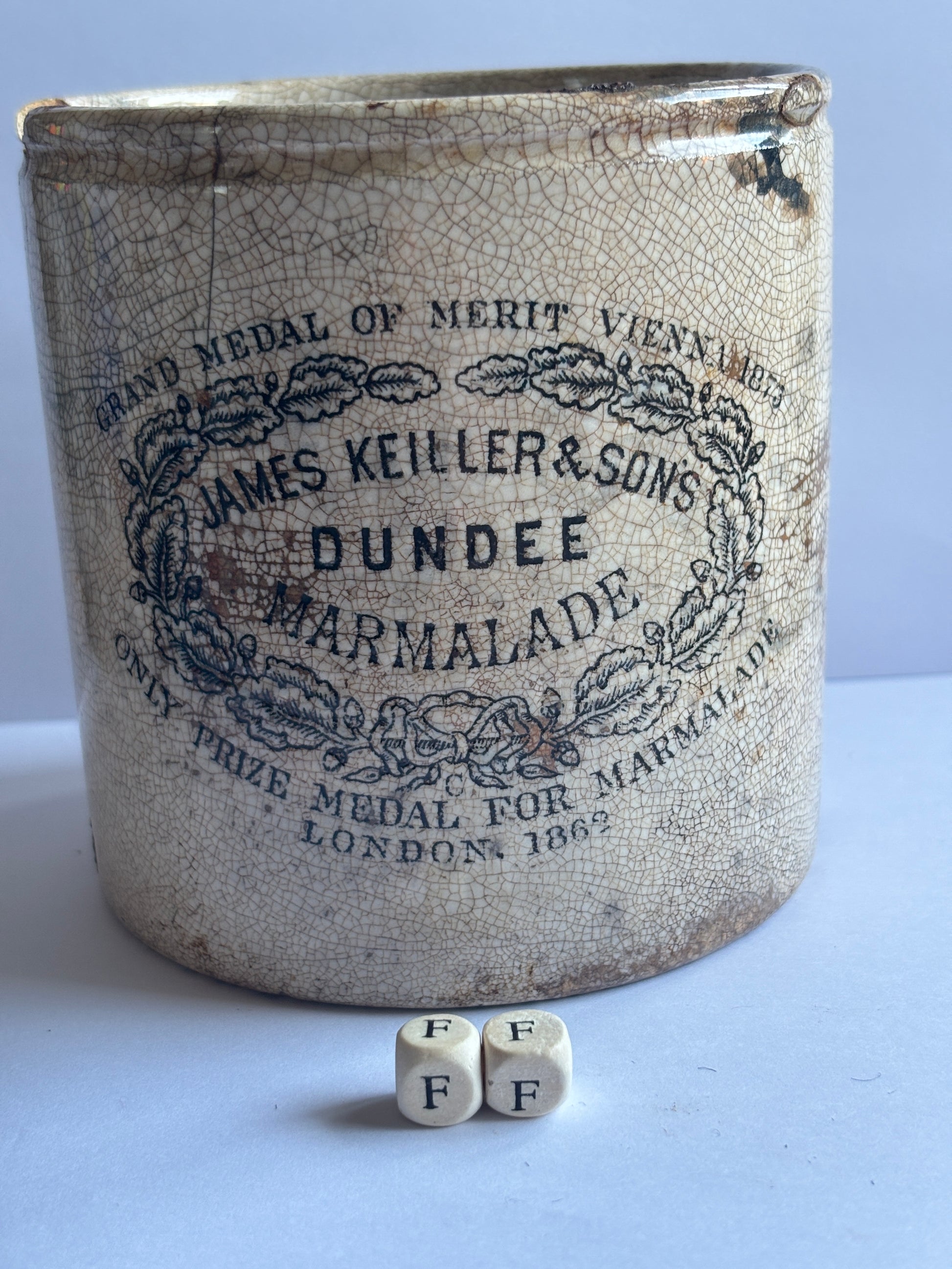 Old 2lb James Keiller dundee marmalade jar (FF) damaged