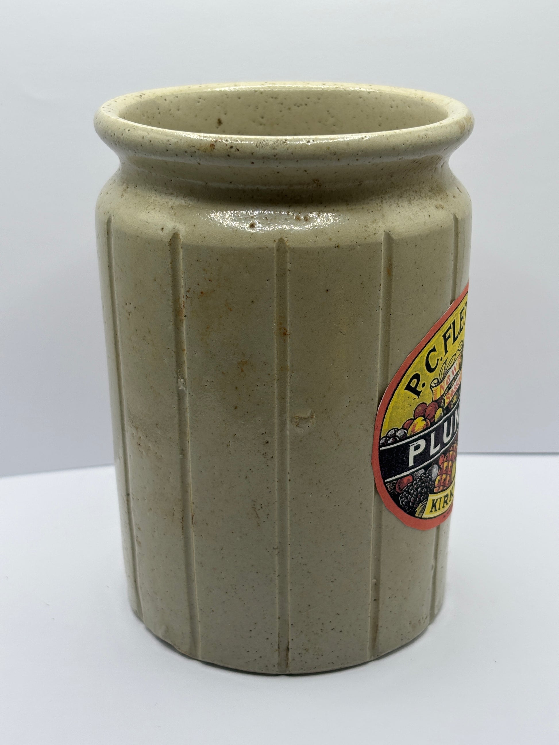 Old 2lb ribbed rolled top jam & marmalade jar, with added label