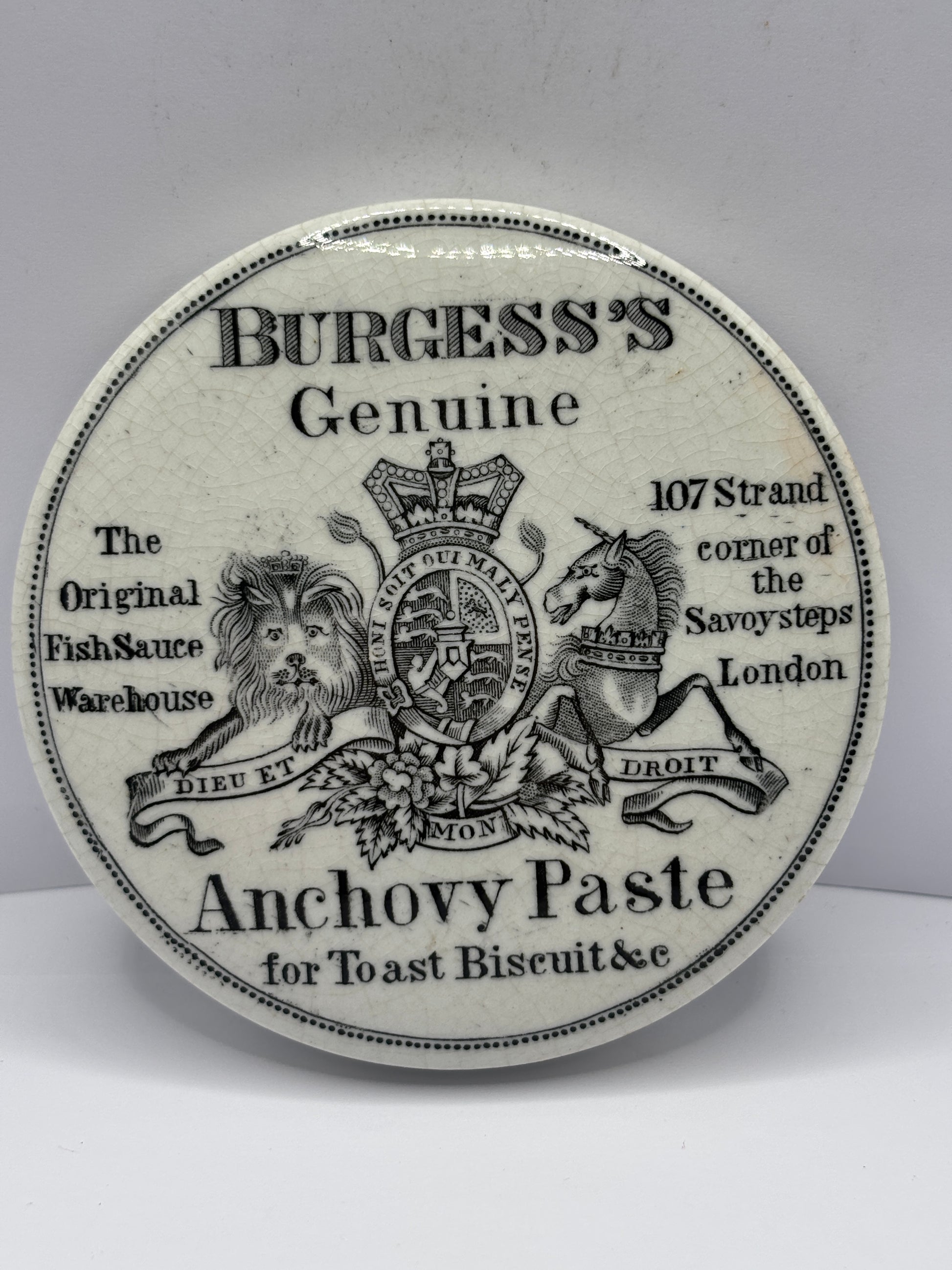 old advertising lid, Burgess’s anchovy paste