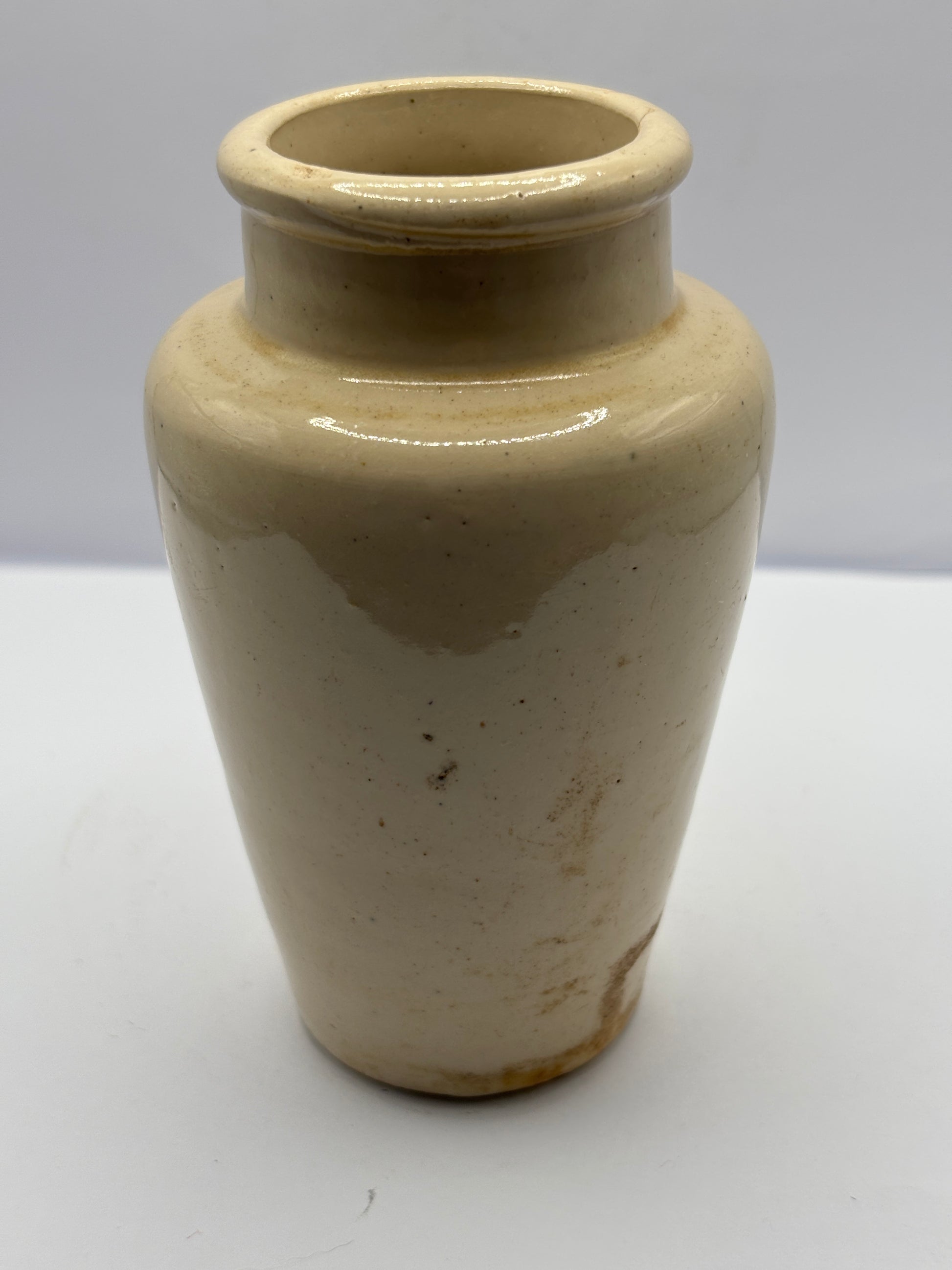 Old advertising stoneware cream pot, Mobberley creamery. Pure rich cream