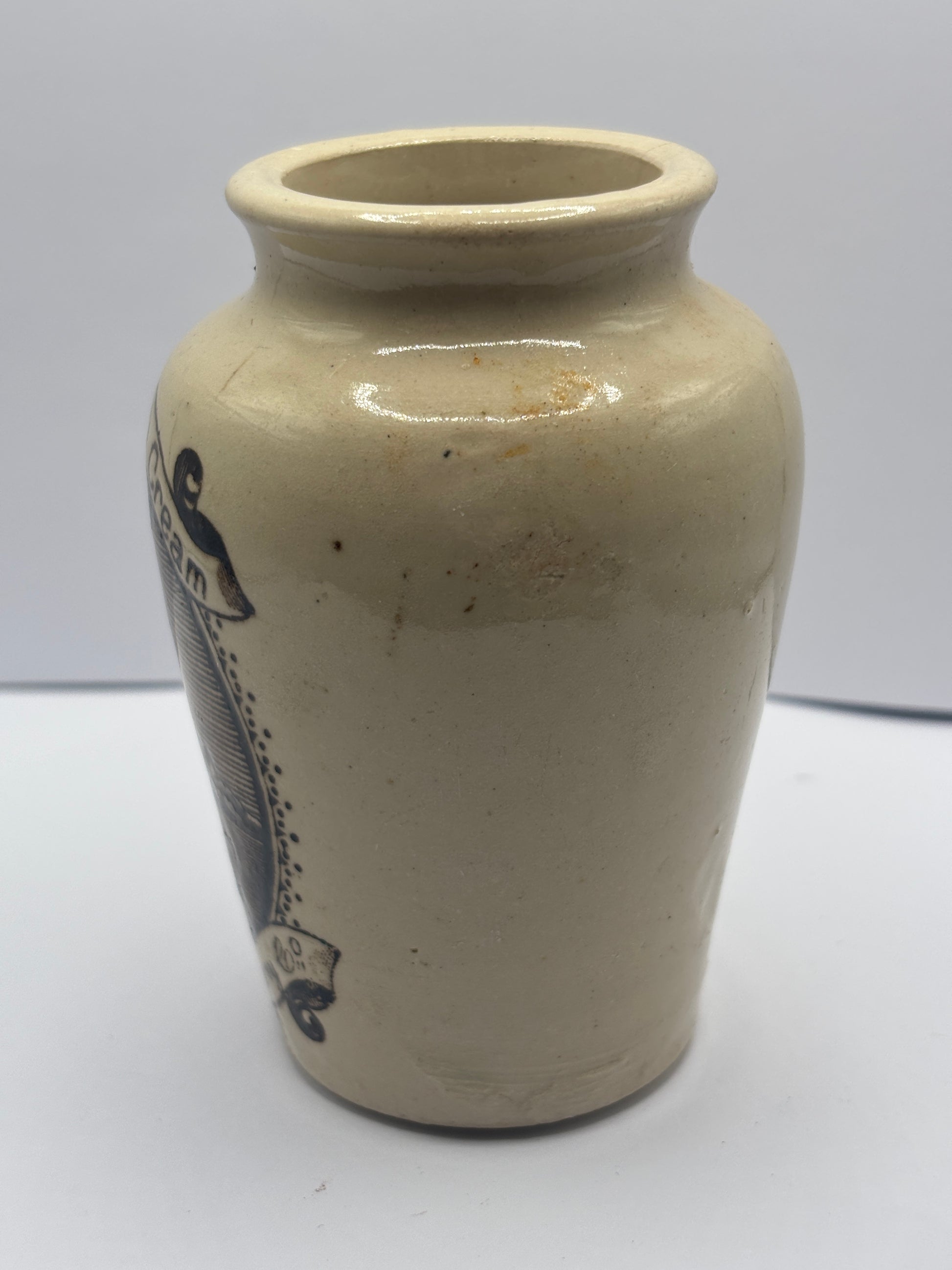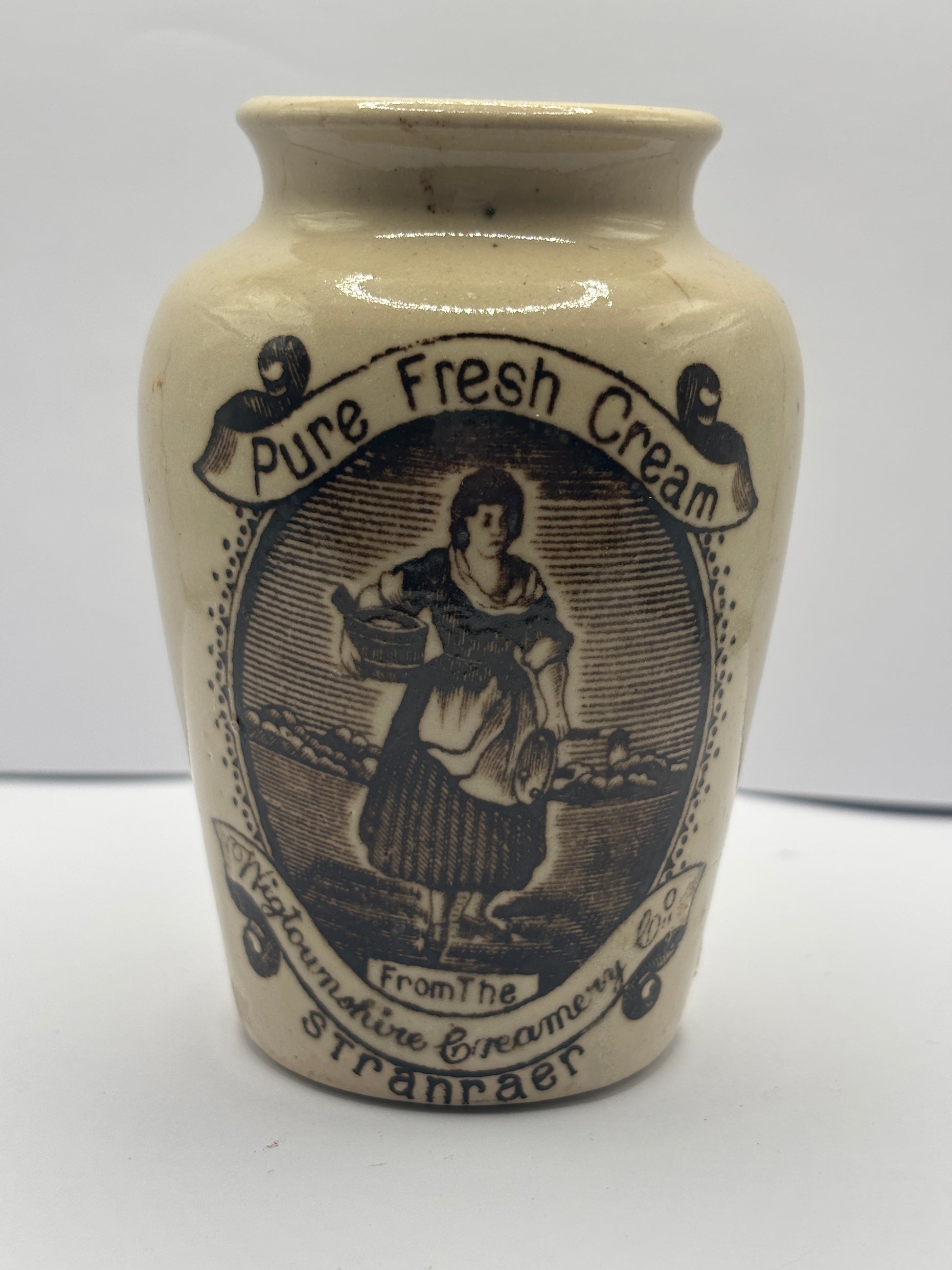 Old serpia print advertising stoneware cream pot, pure fresh cream, Stranraer