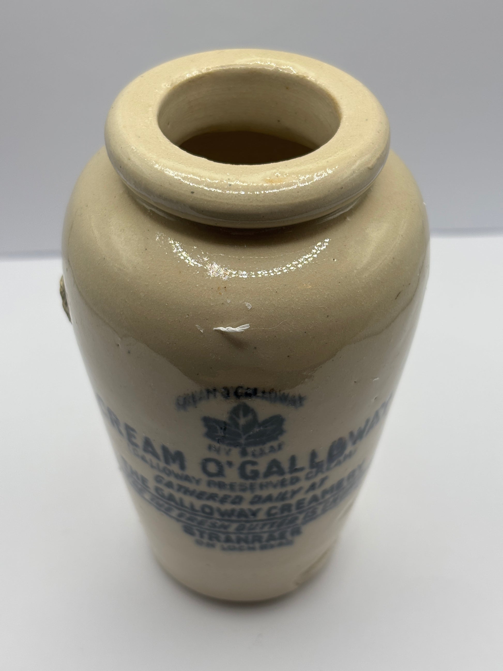 Old advertising stoneware cream pot, The Galloway creamery Stranraer
