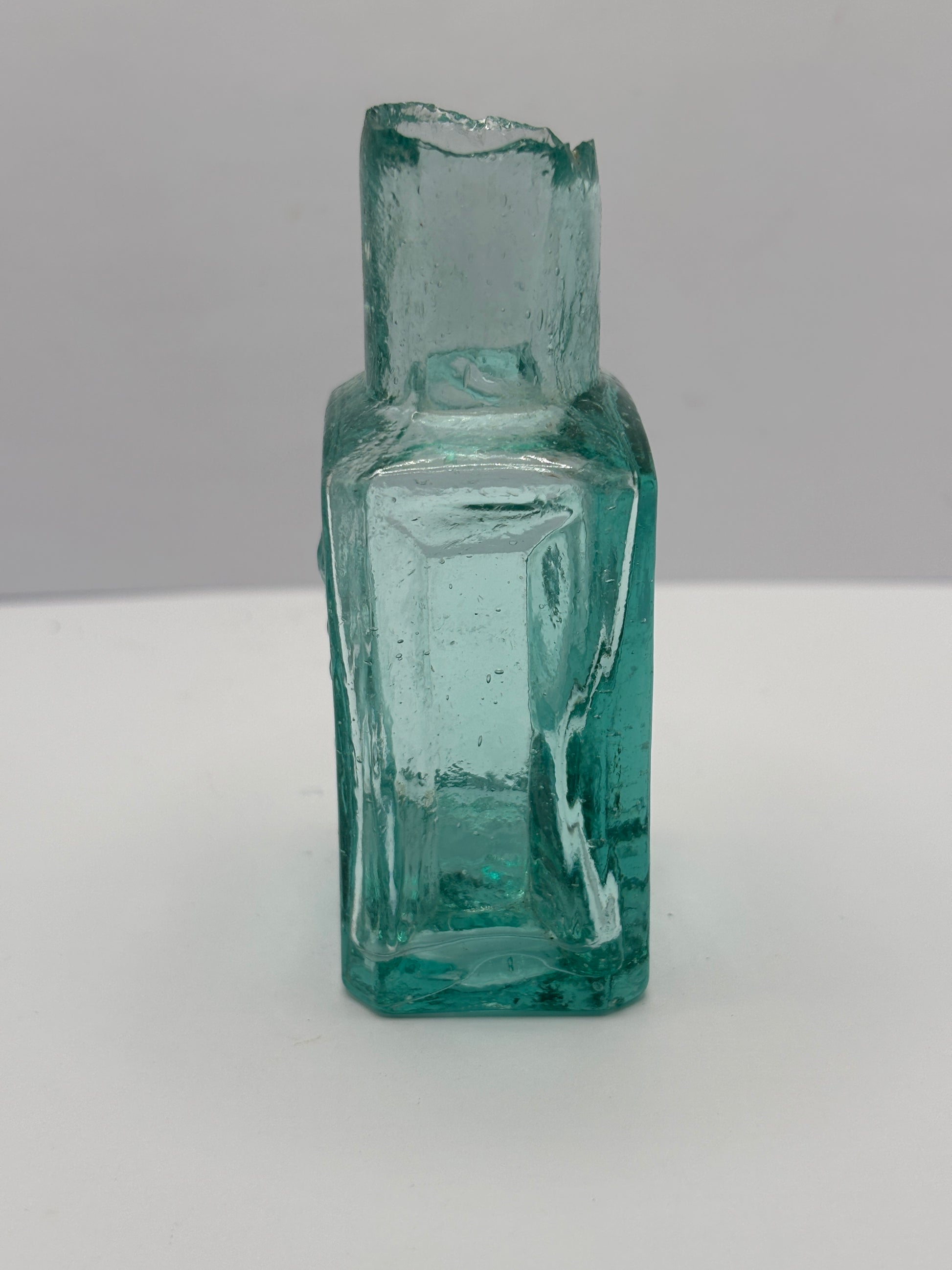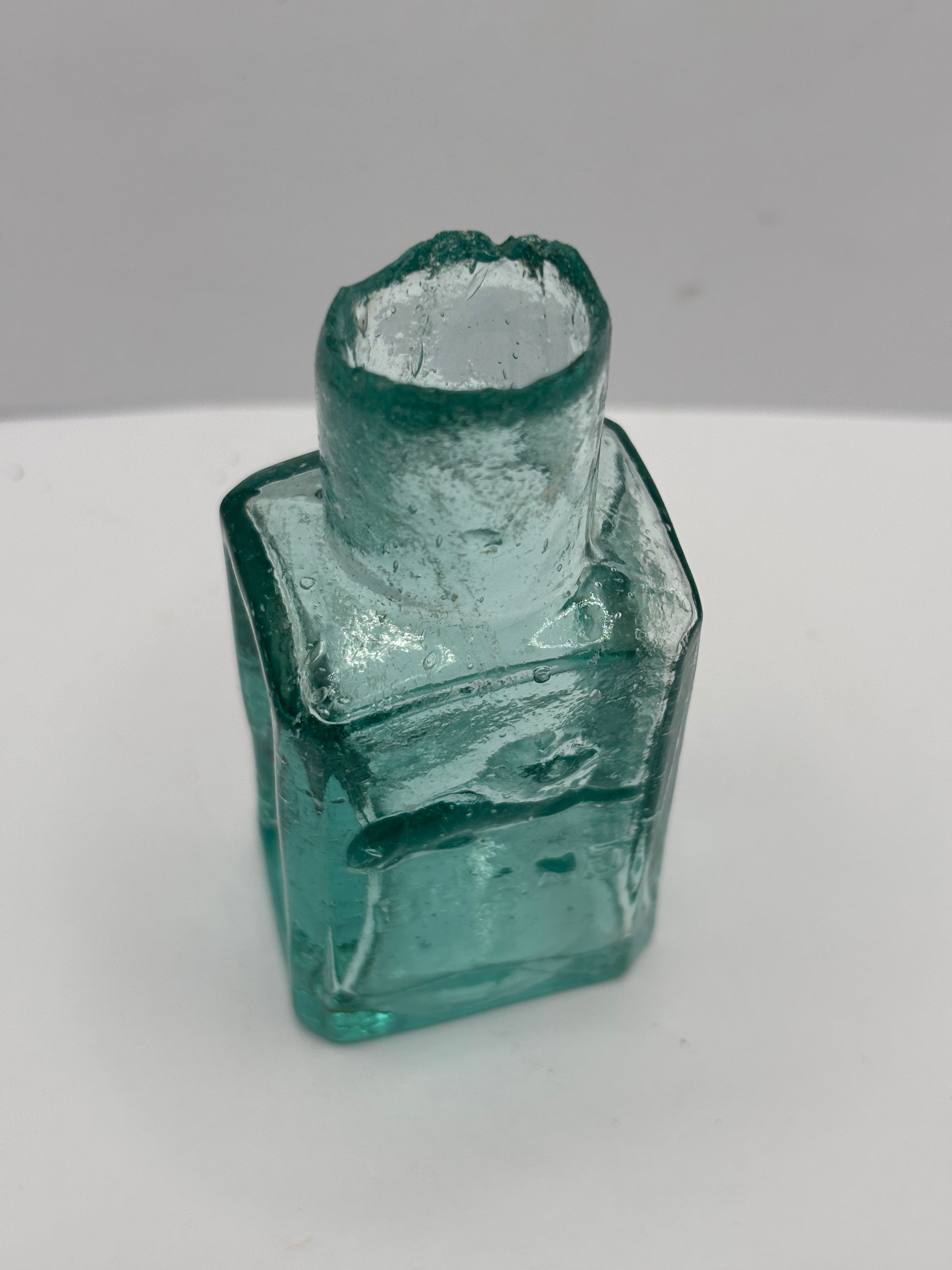 Old aqua glass advertising ink, ink bottle, inkwell. Lion brand ink