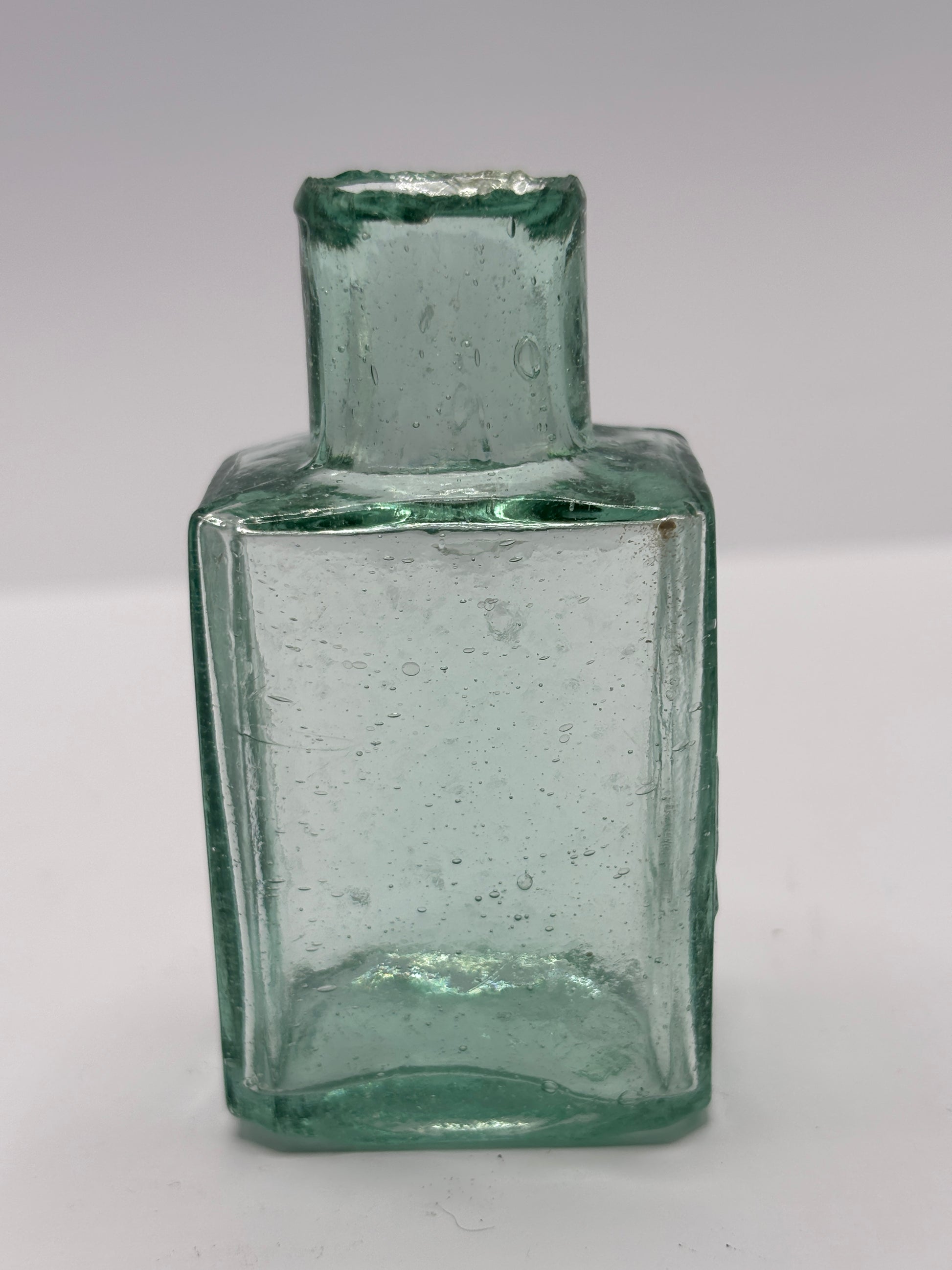 Old aqua glass Morrells ink, ink bottle, inkwell