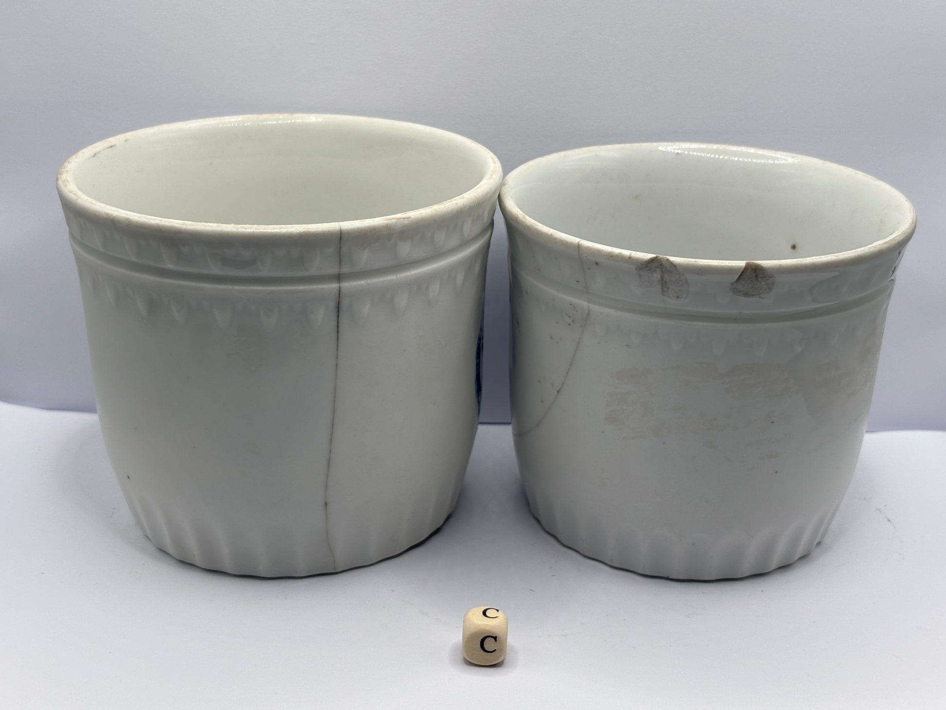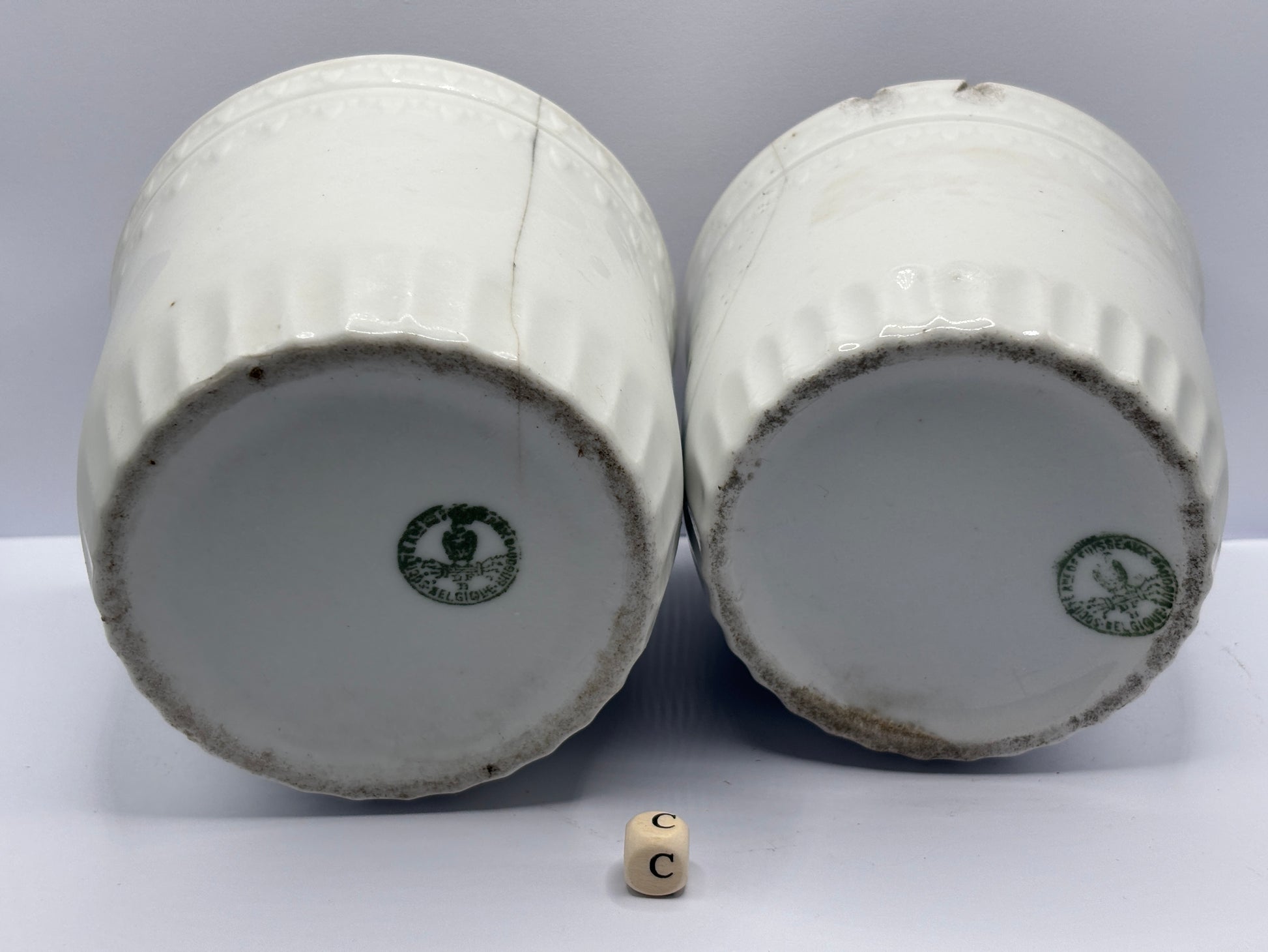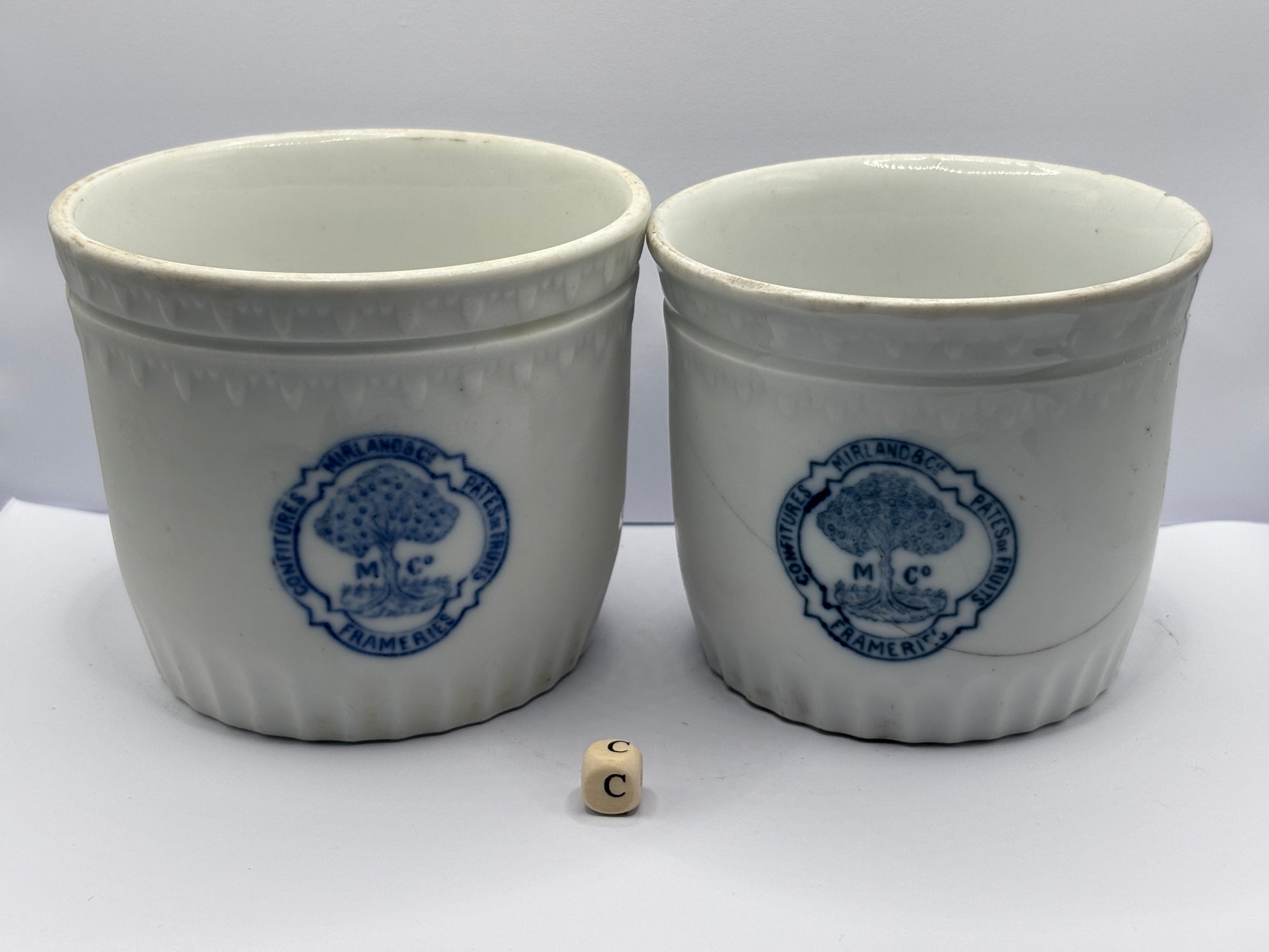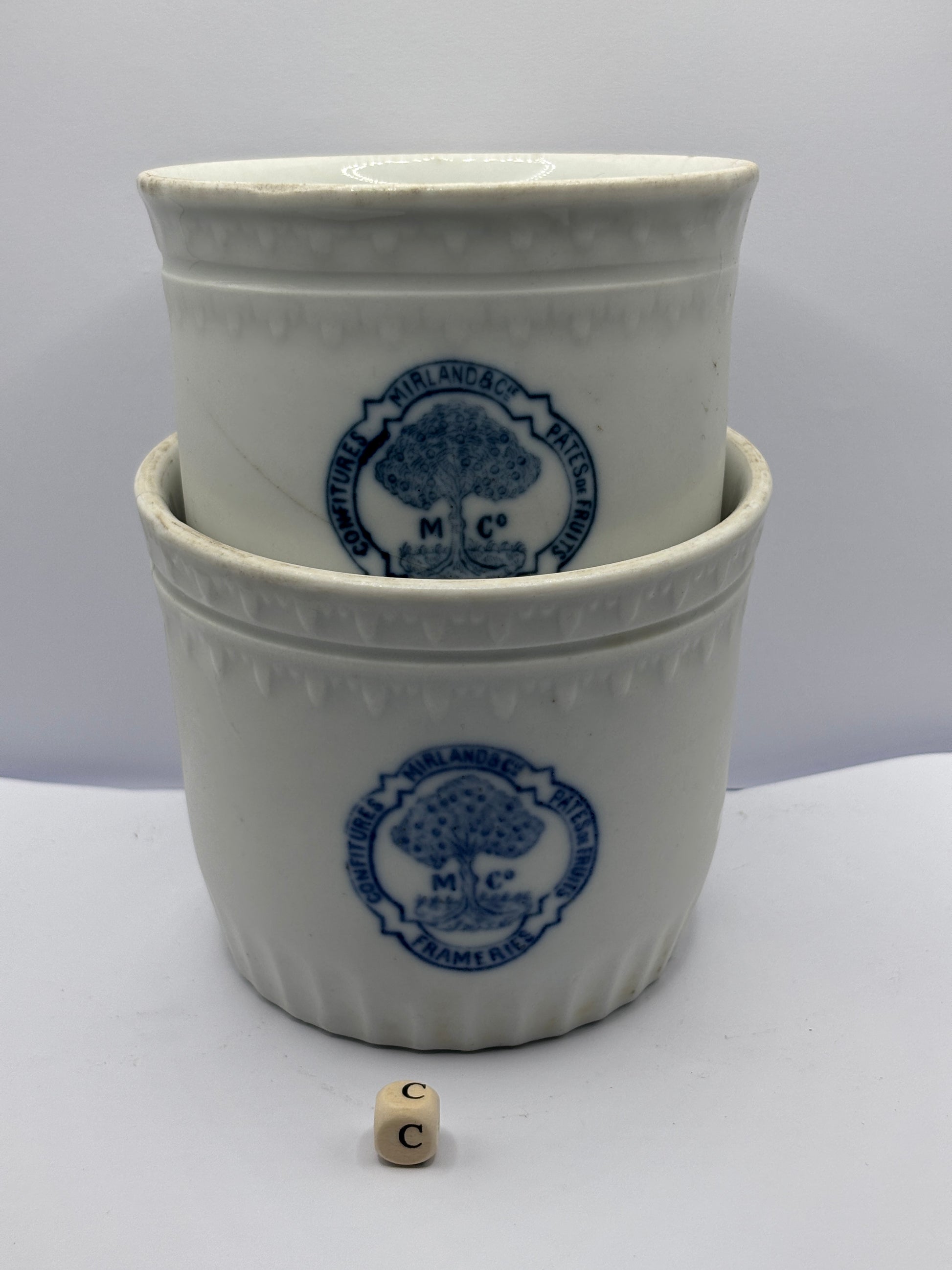 2 Old belgian stoneware jam/ preserve pots damaged (C)