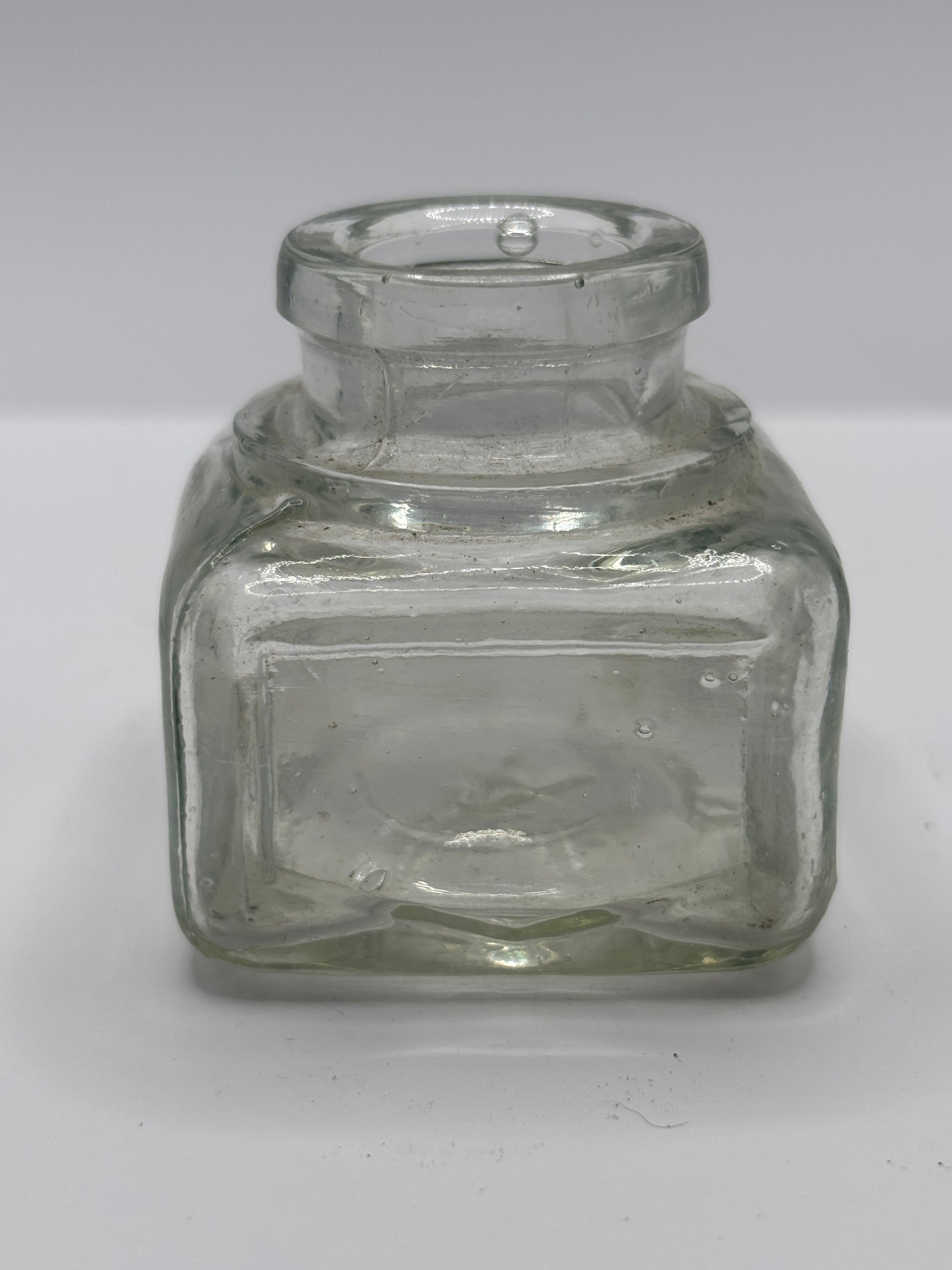 Old clear glass ink bottle, inkwell. fields ink & gum