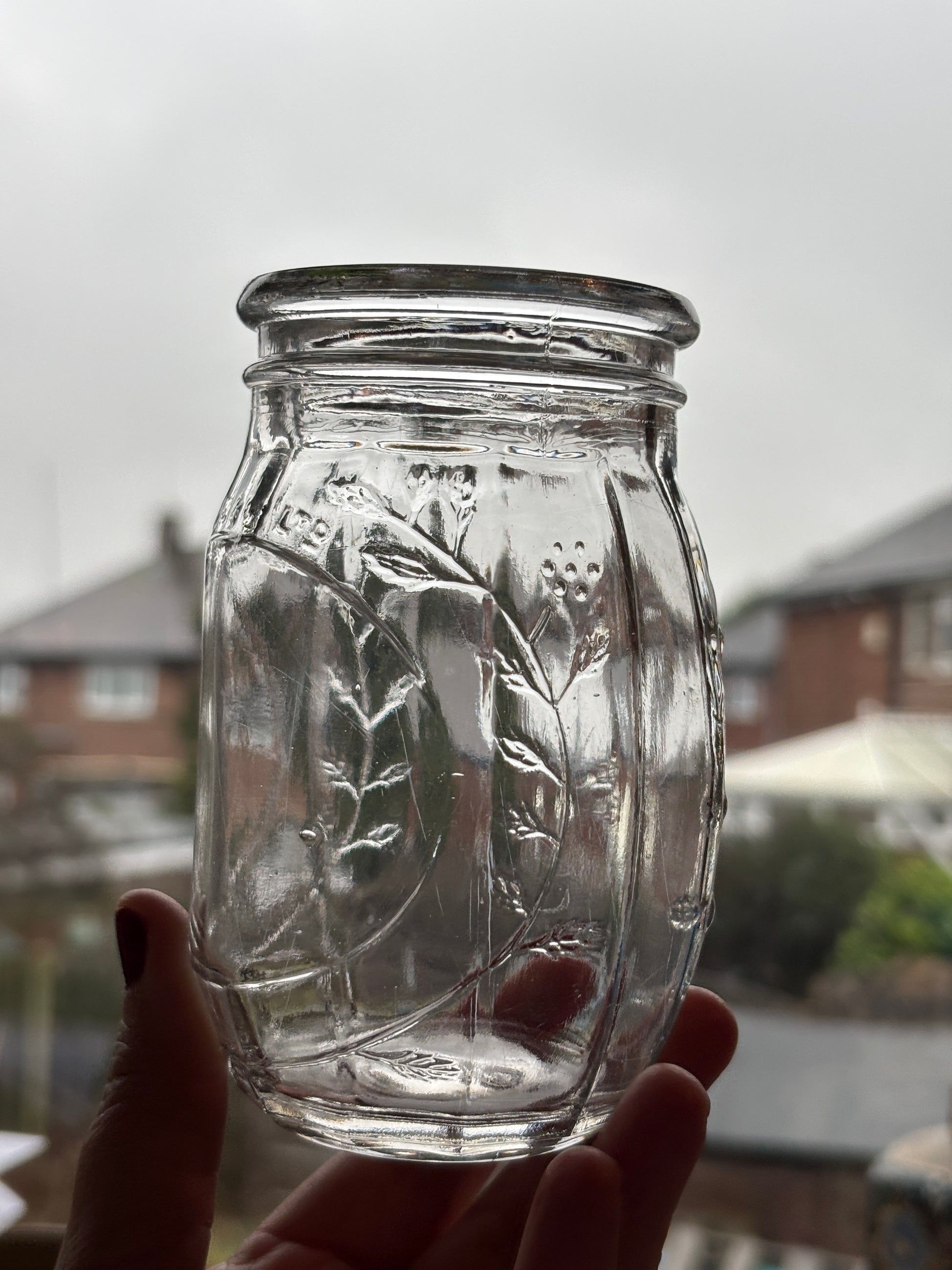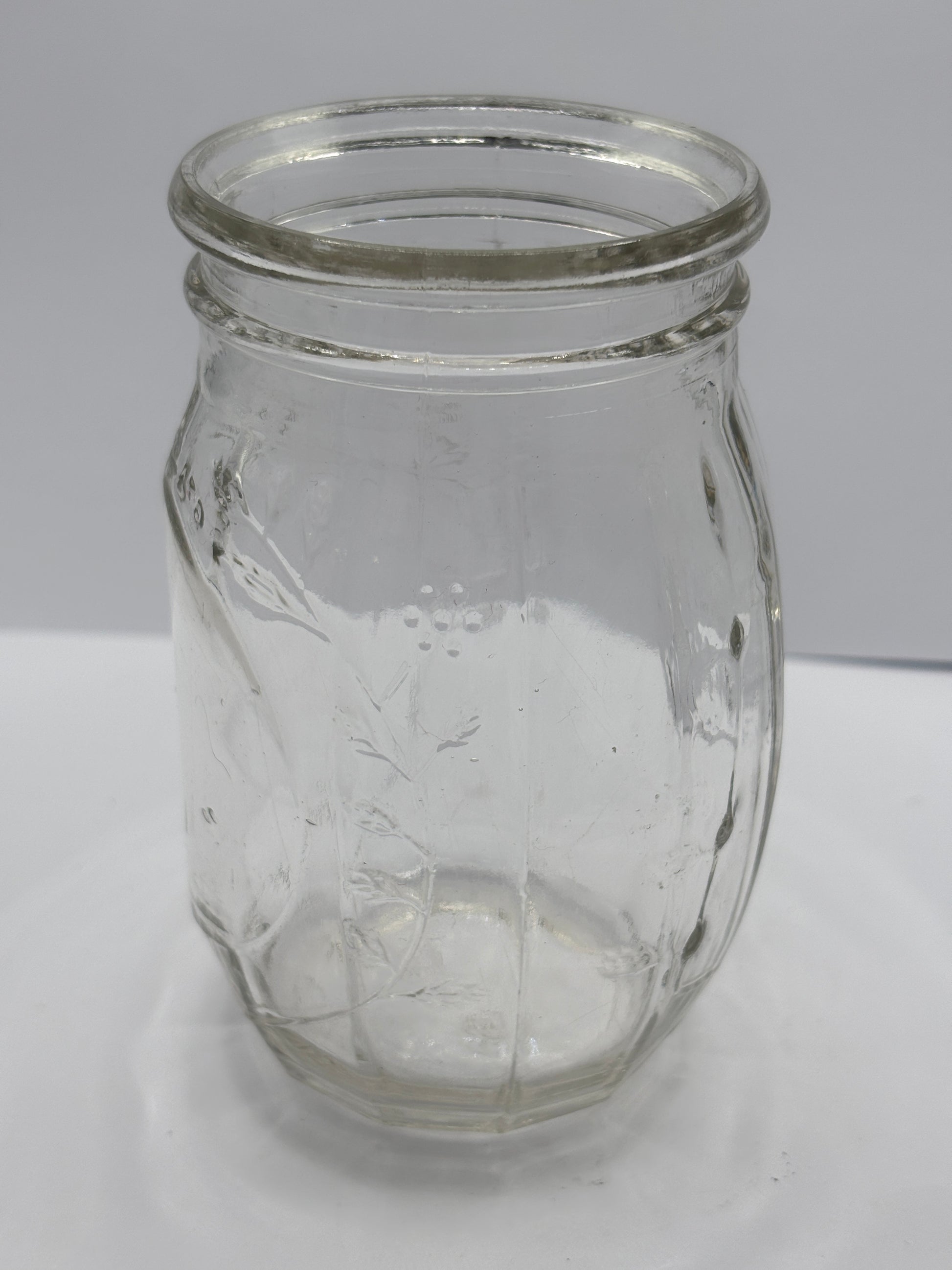 Old clear glass jar, Roses