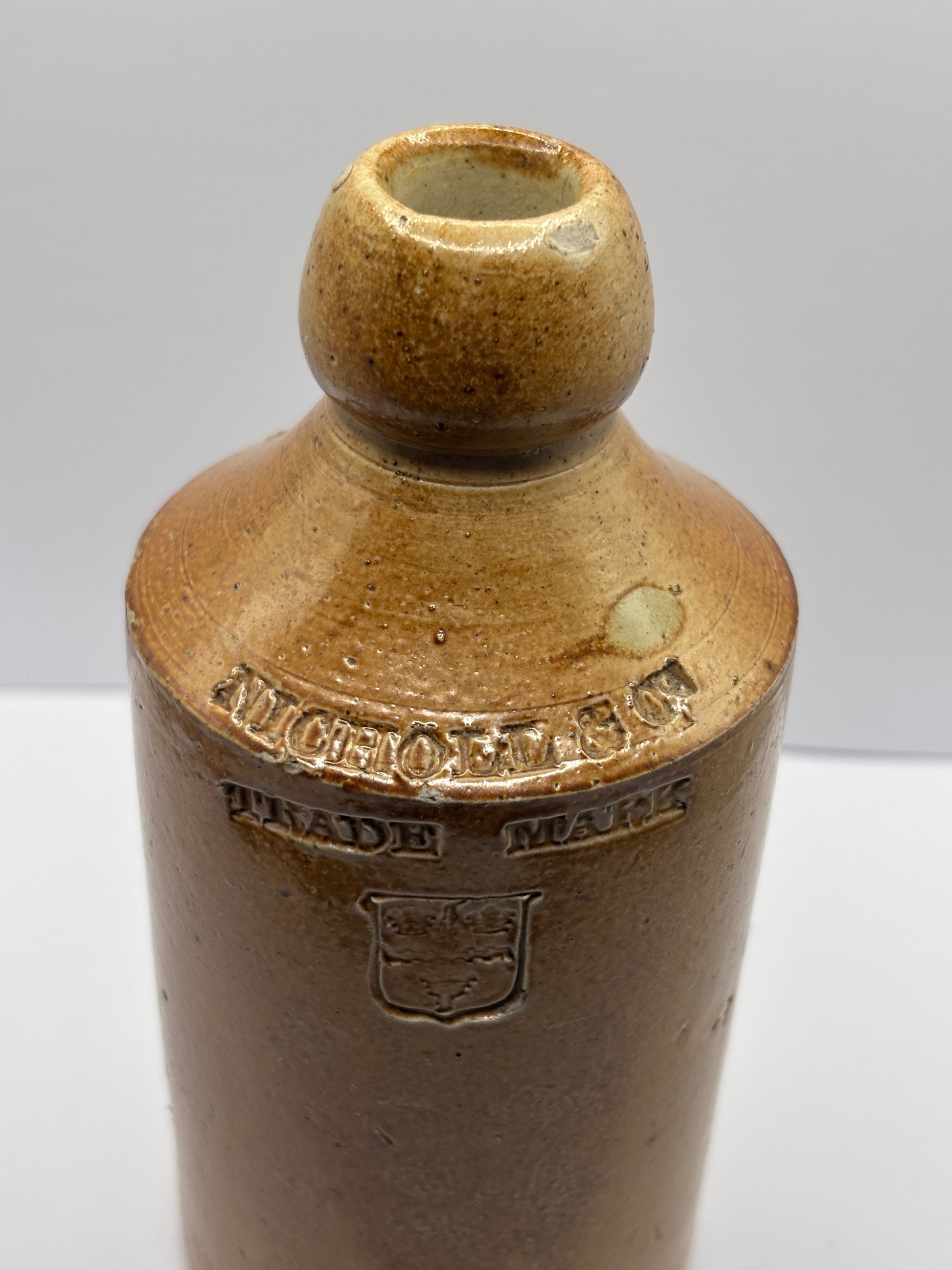 Old Colchester impressed ginger beer bottle, Nicholl & co