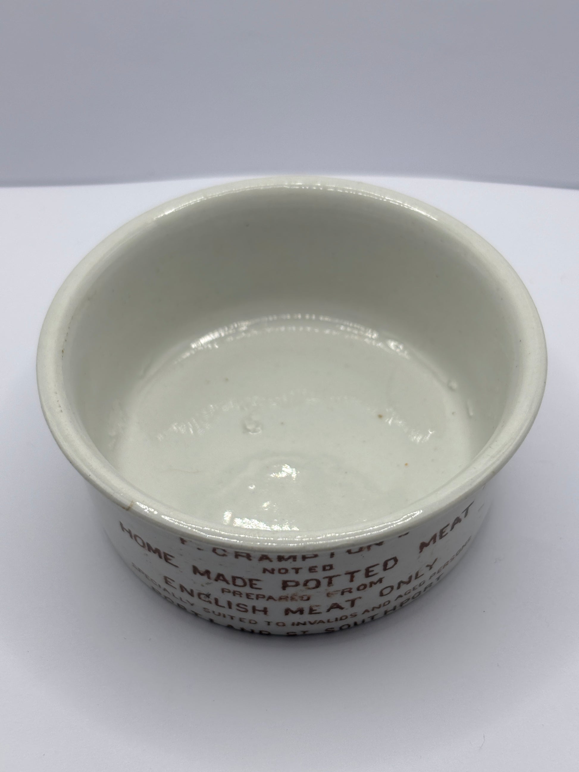 Old cramptons advertising meat paste pot, potted meat
