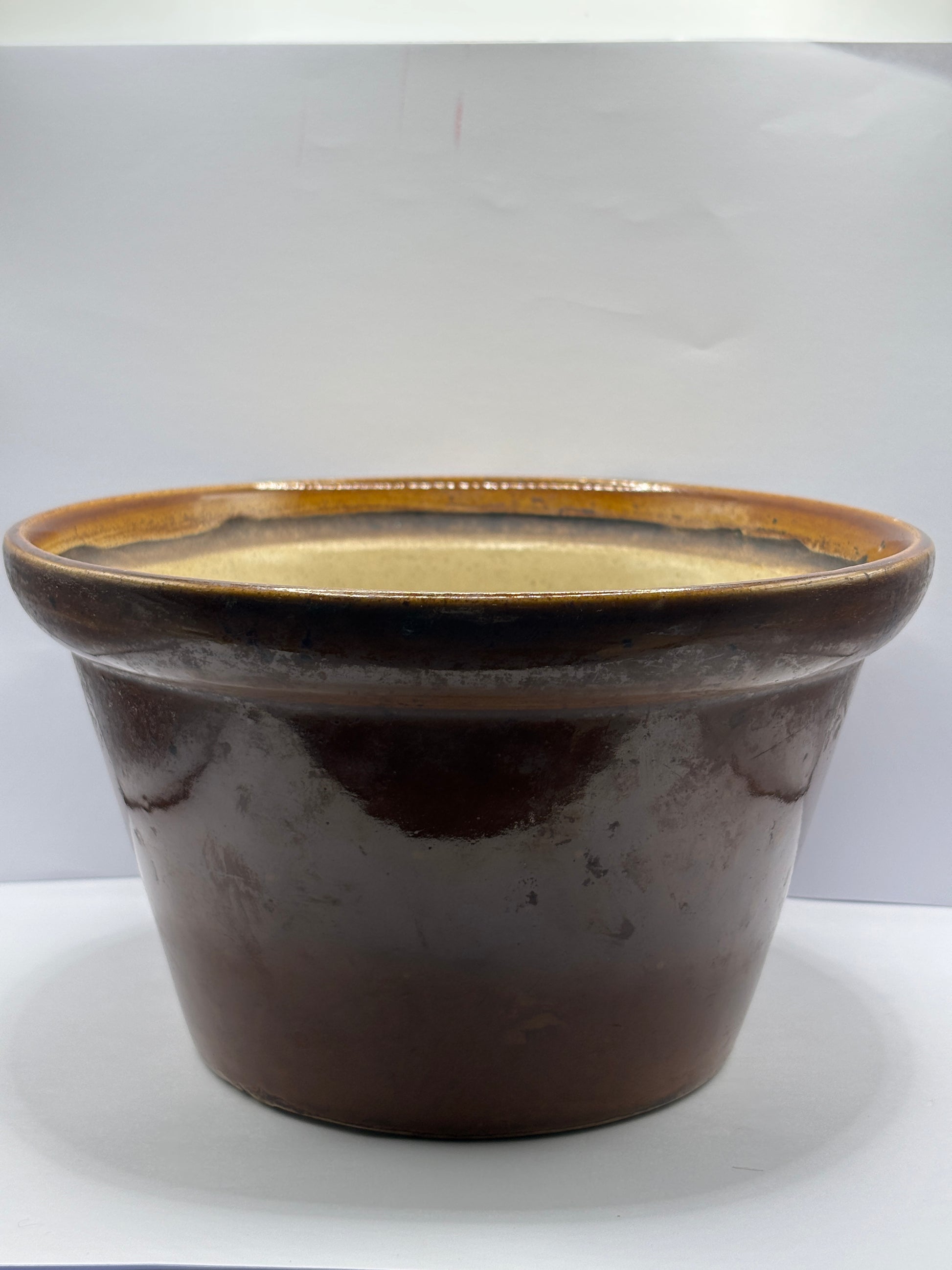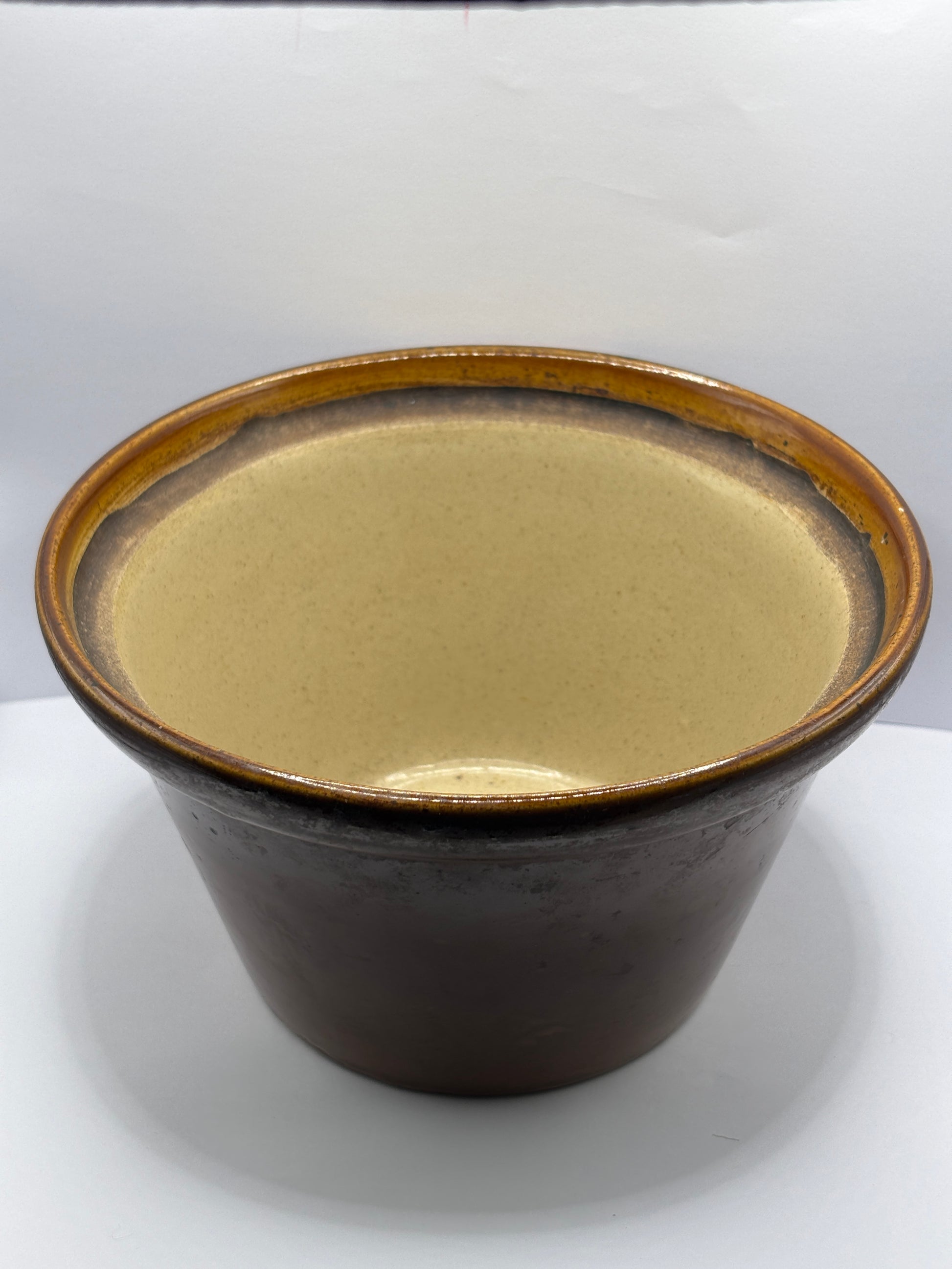 Old large brown stoneware bowl