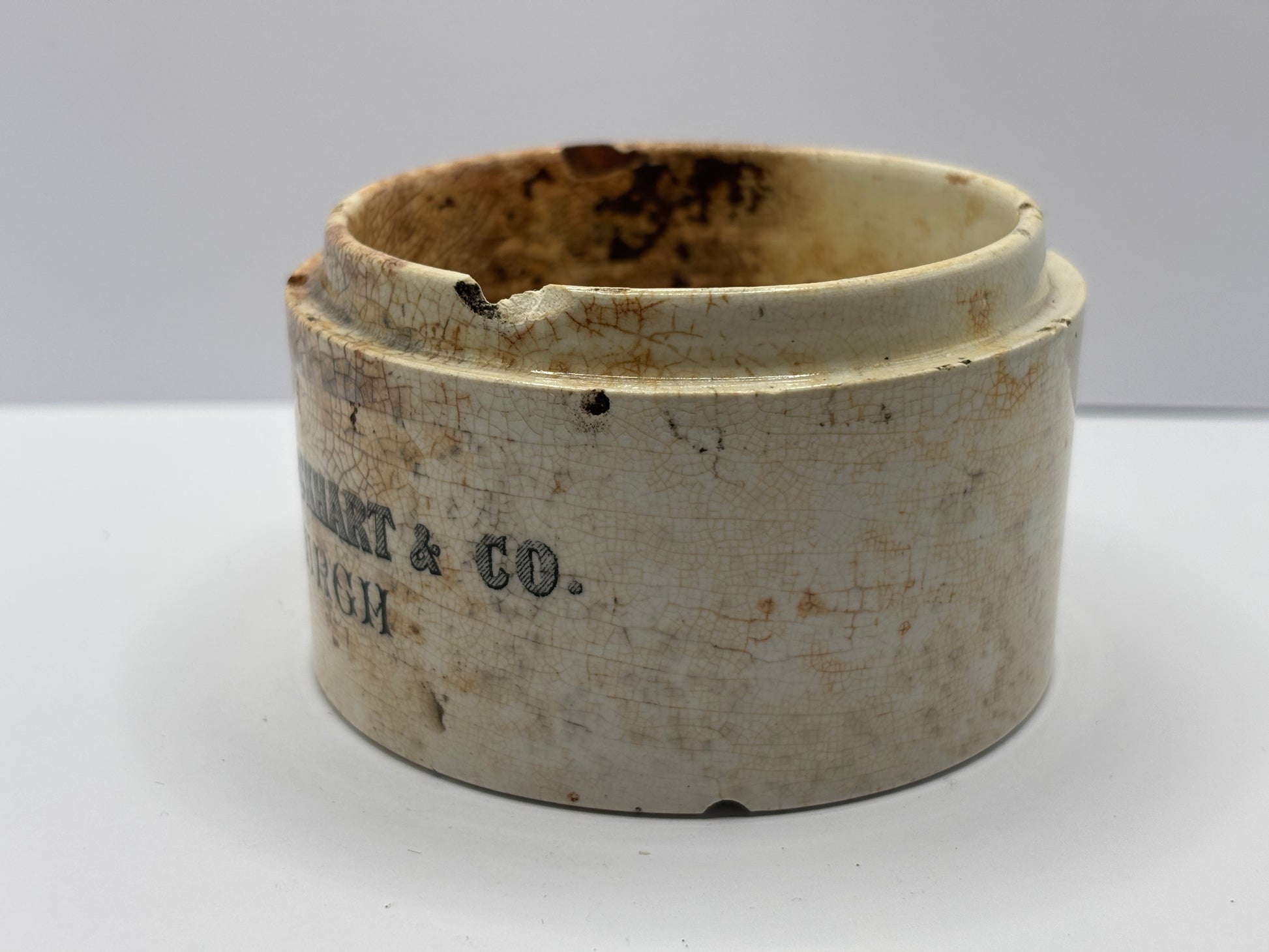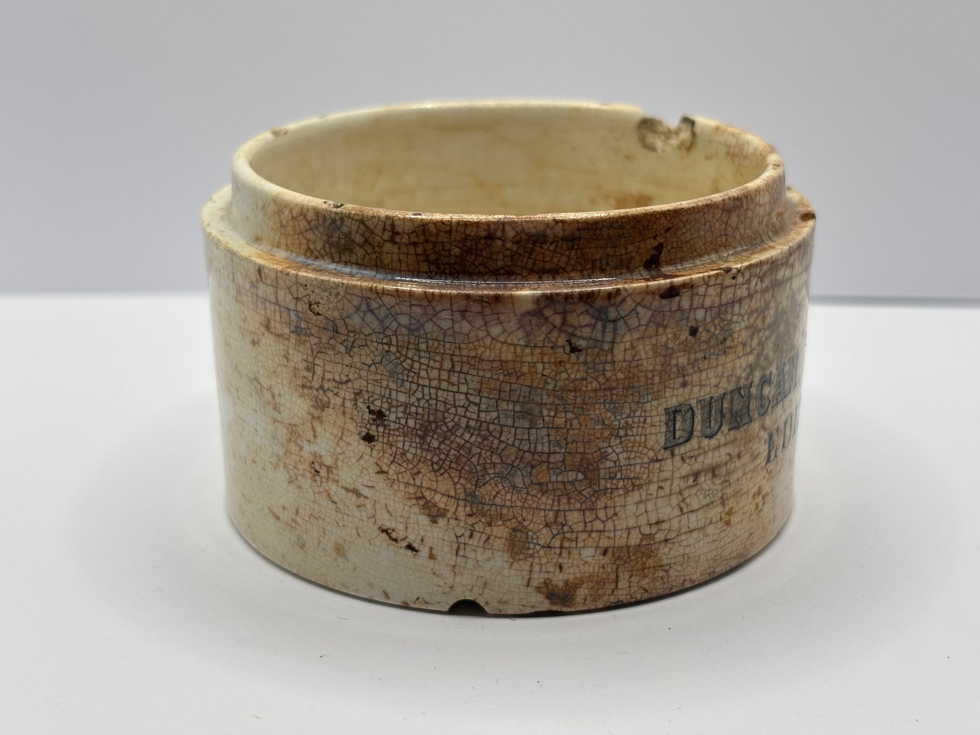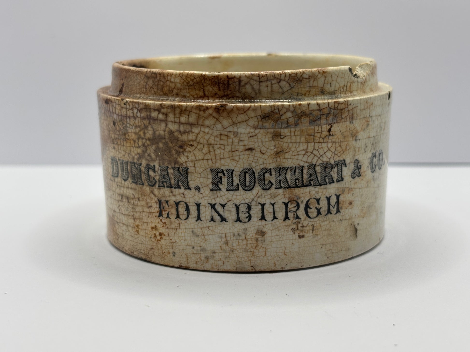 Old large Duncan Flockhart advertising chemist base, stained & crazed