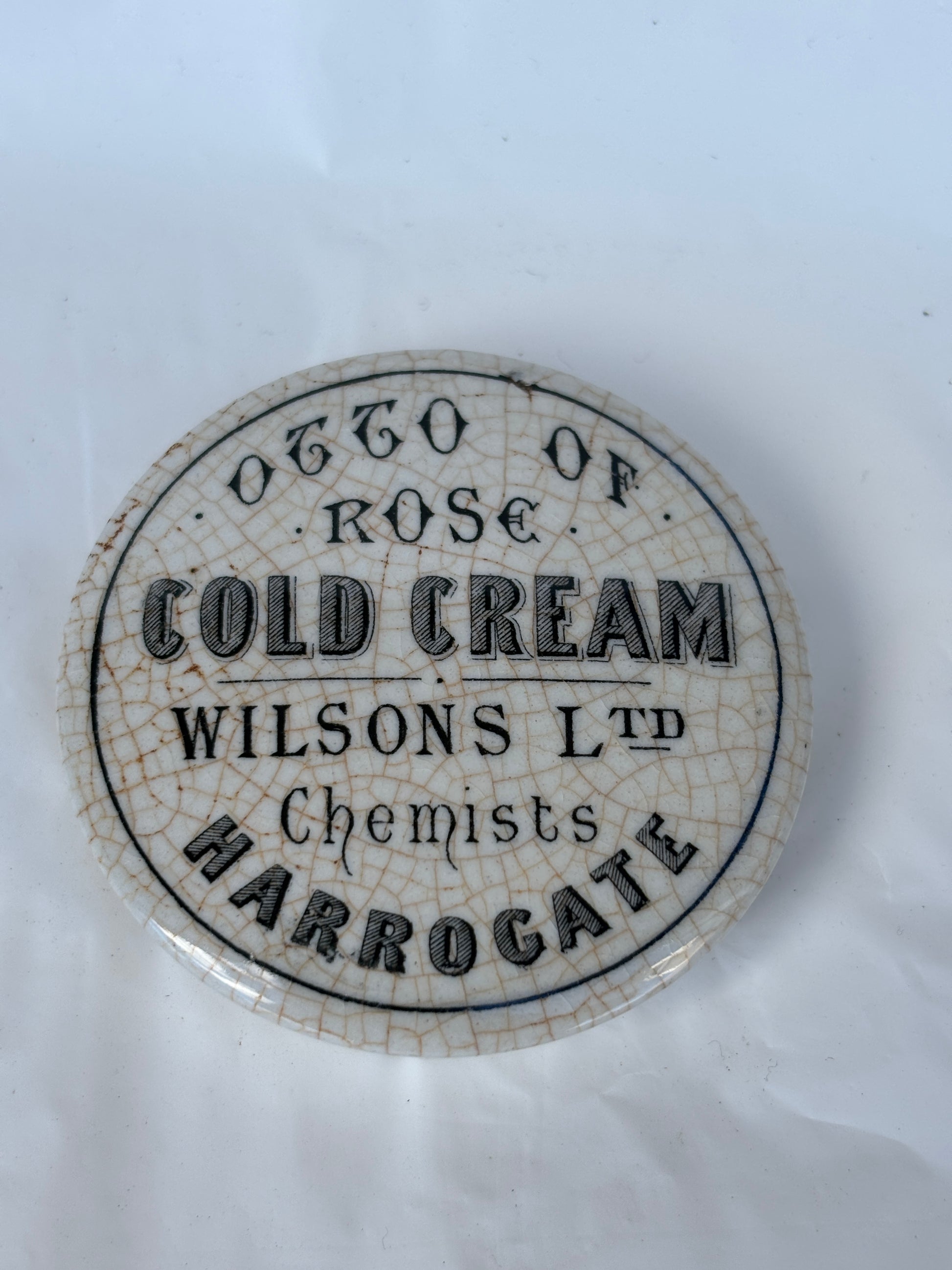 Old otto of rose cold cream advertising lid, pot lid. Harrogate