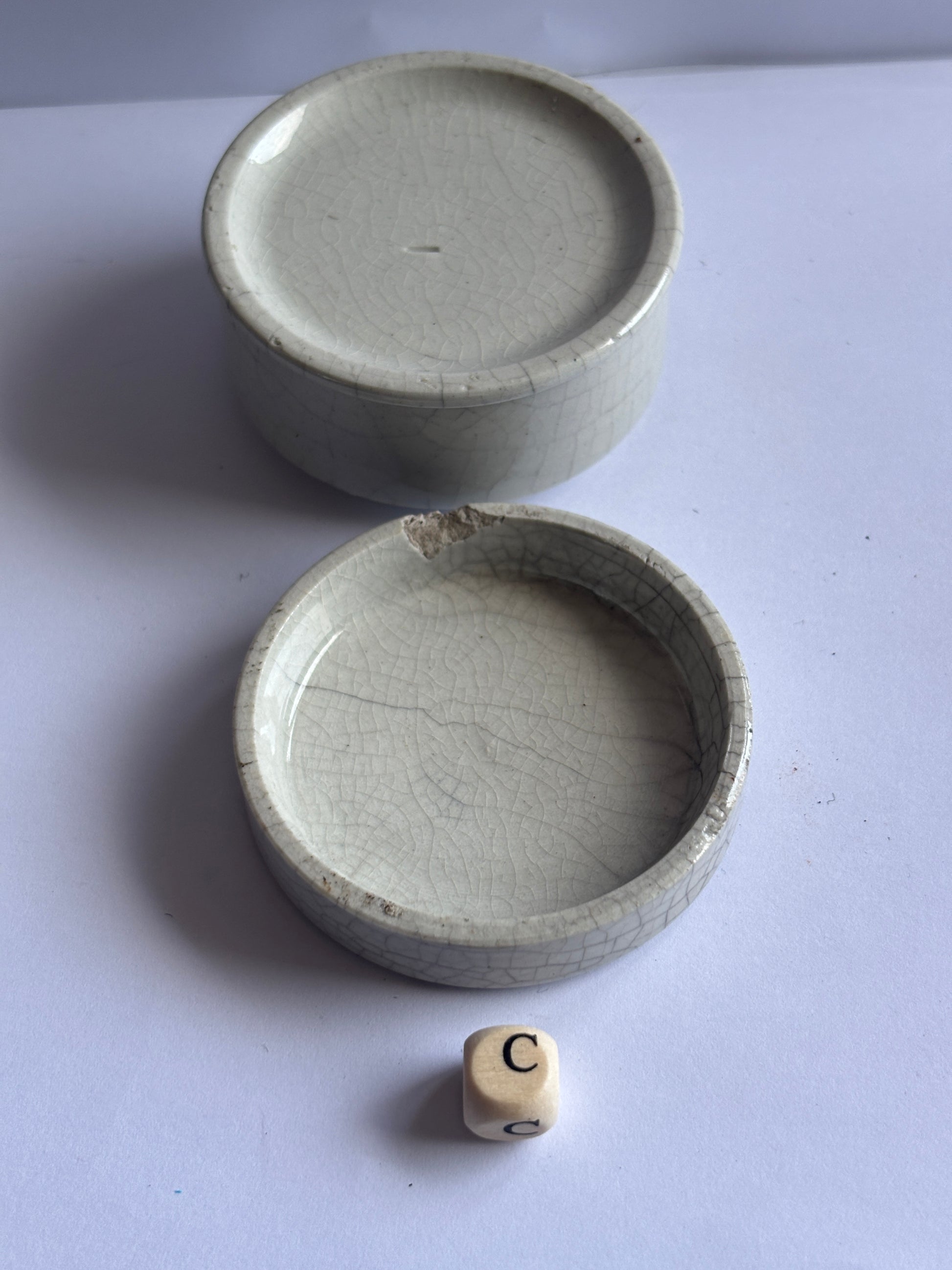 Old plain pot lid and base, stoneware (C)