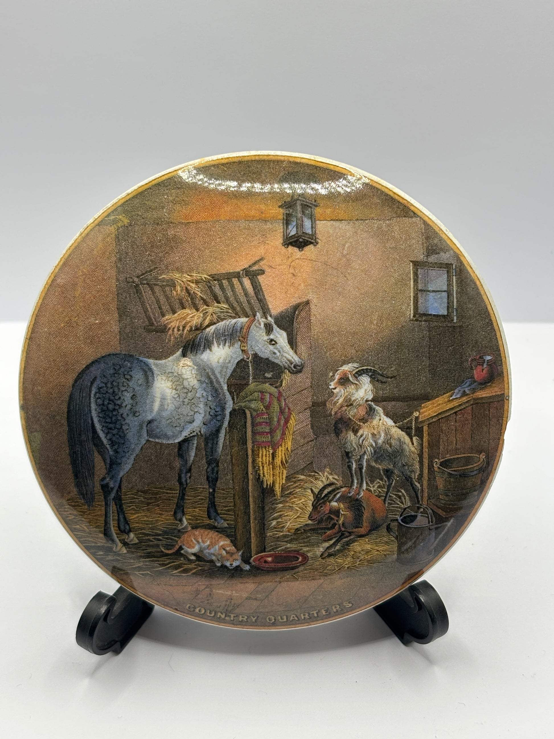 Old Prattware lid, victorian pot lid. Country quarters. Pratt lid. Damaged