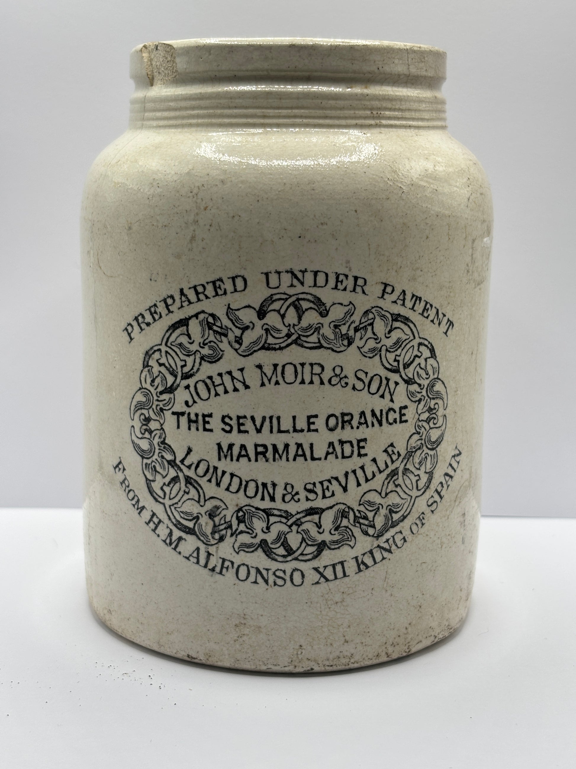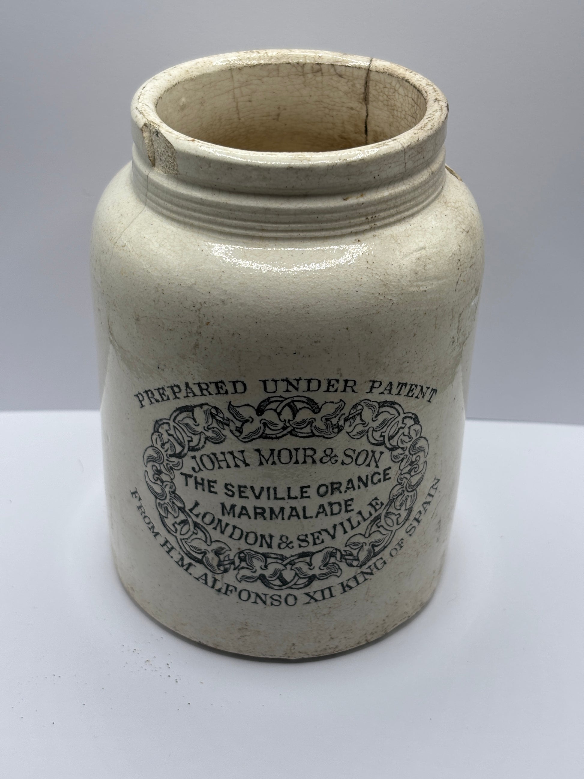 Old rare 2lb John Moir marmalade jar, The seville orange marmalade. Damaged