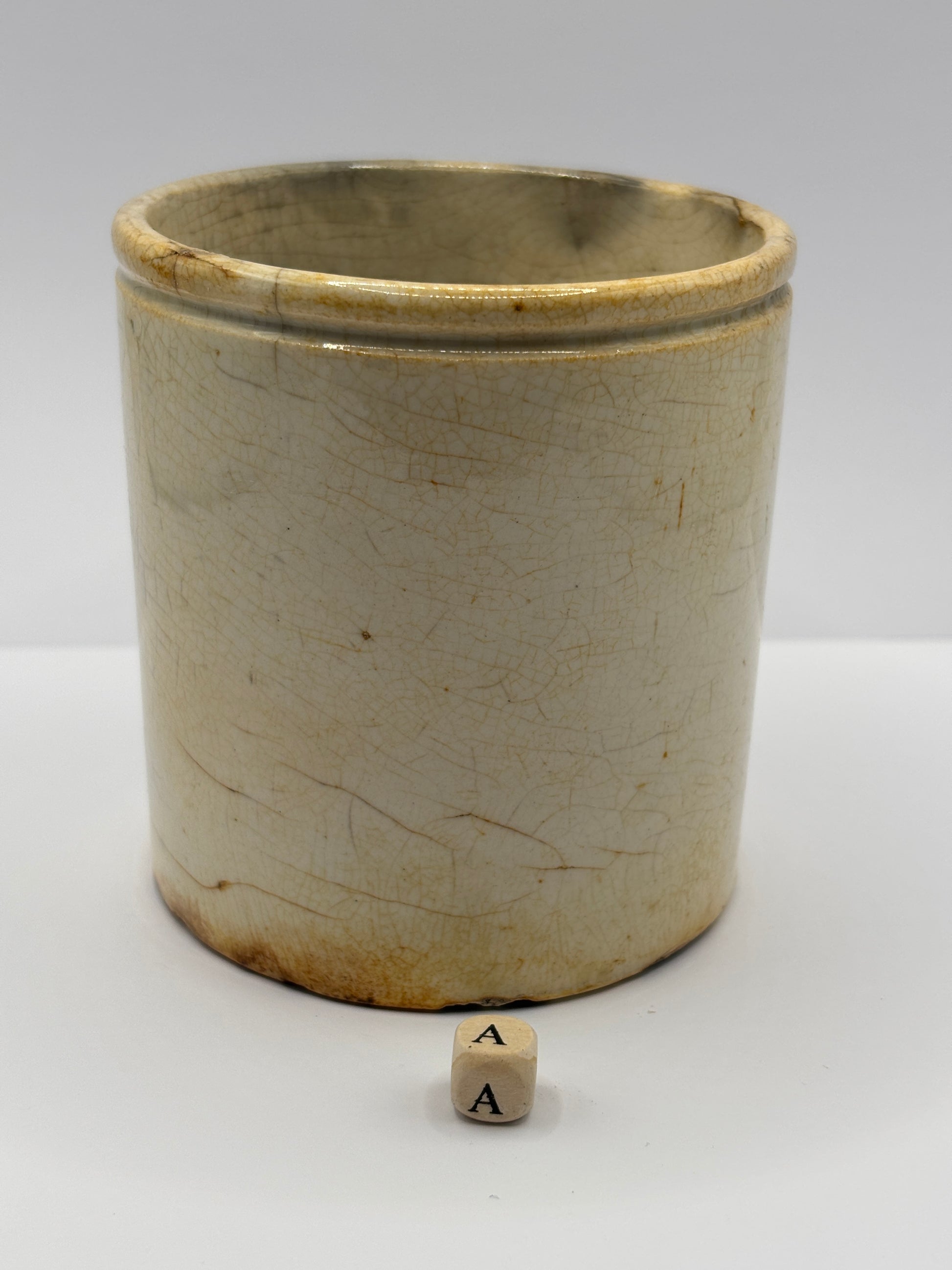 Old stained & crazed marmalade jar (a)