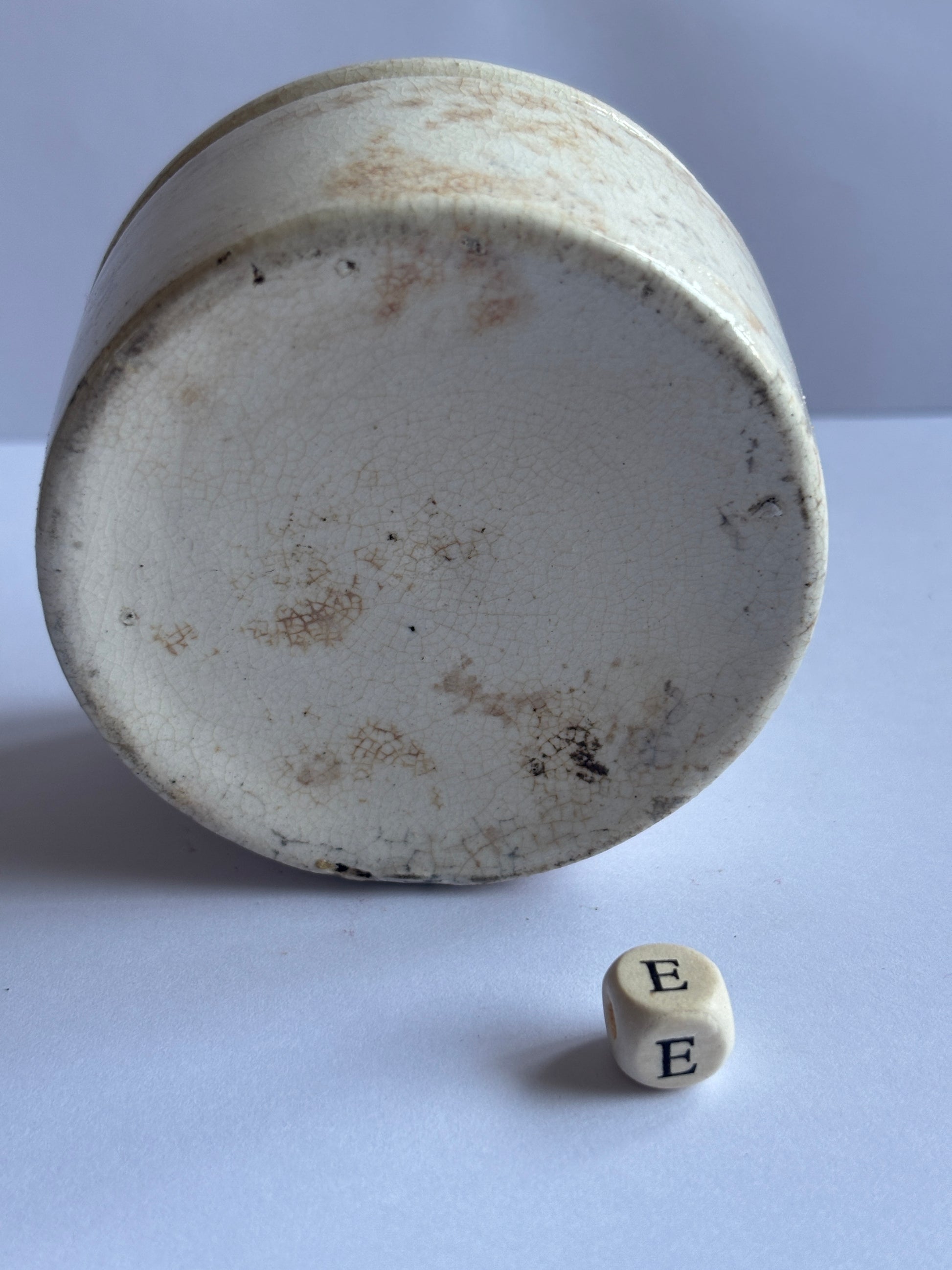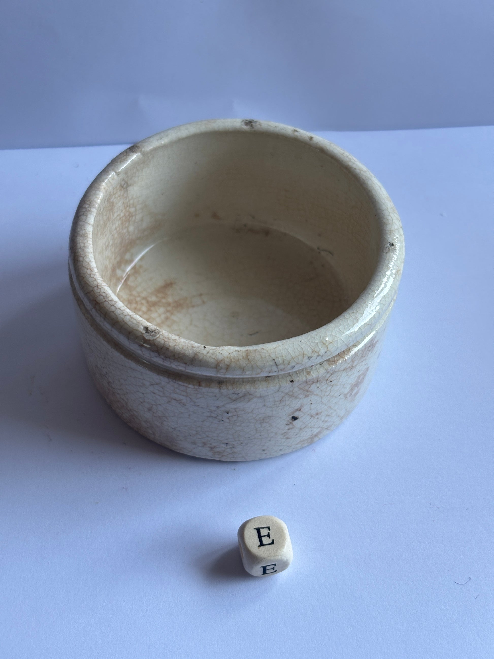 Old stained & crazed stoneware meat paste pot