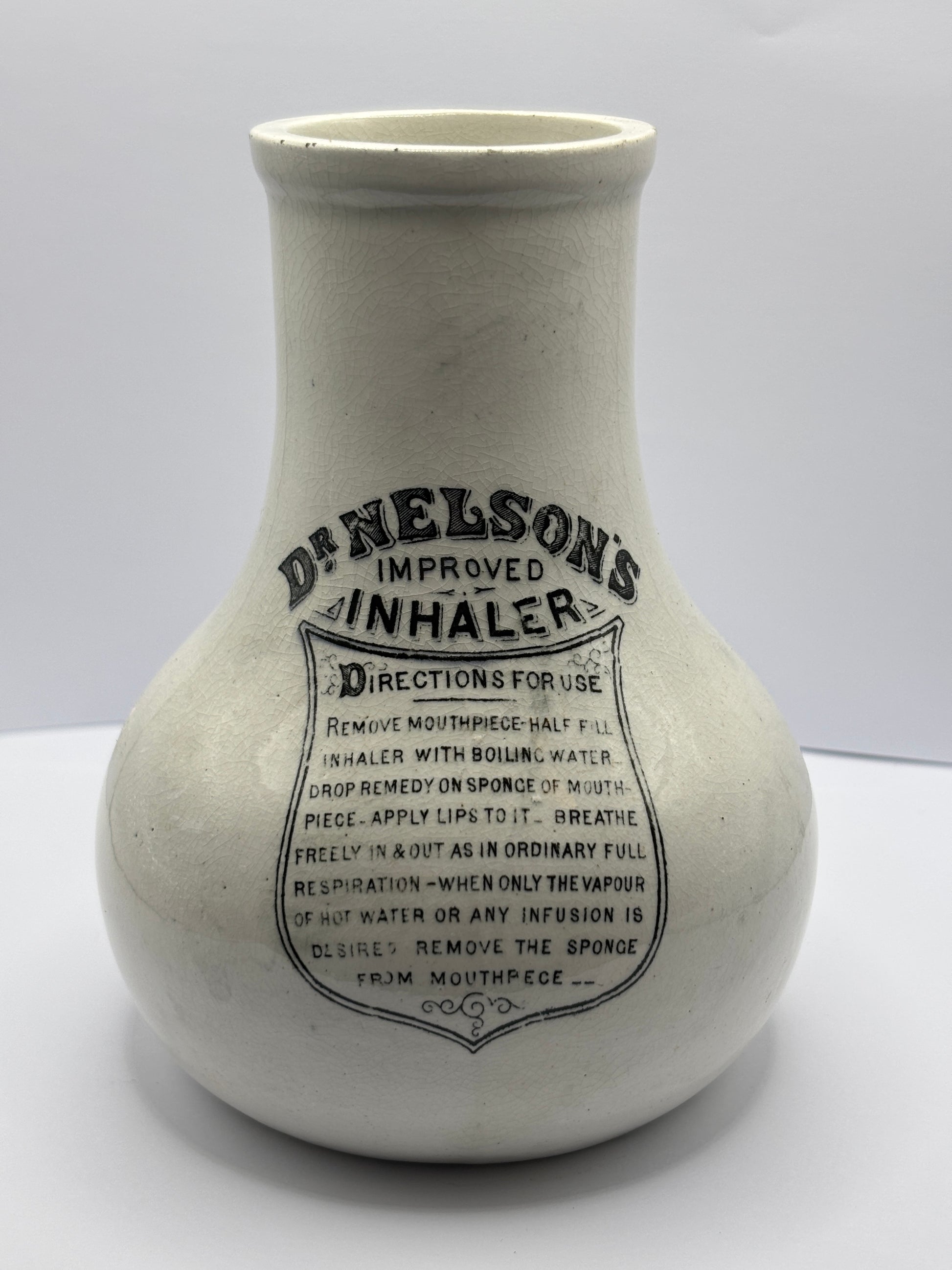 Old stoneware advertising inhaler, improved inhaler 13cms