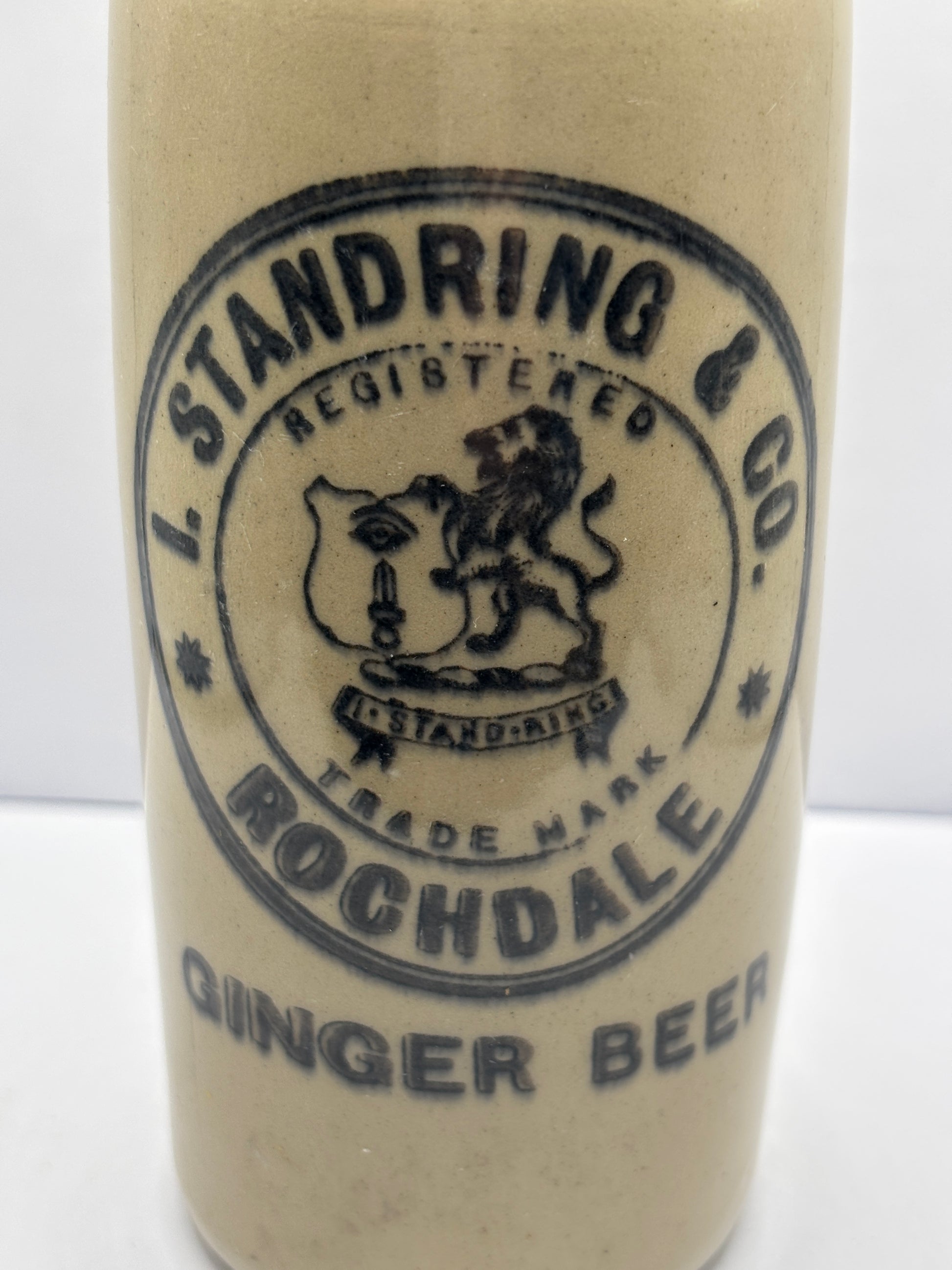 Old stoneware ginger beer bottle, I.Standring & Co Rochdale