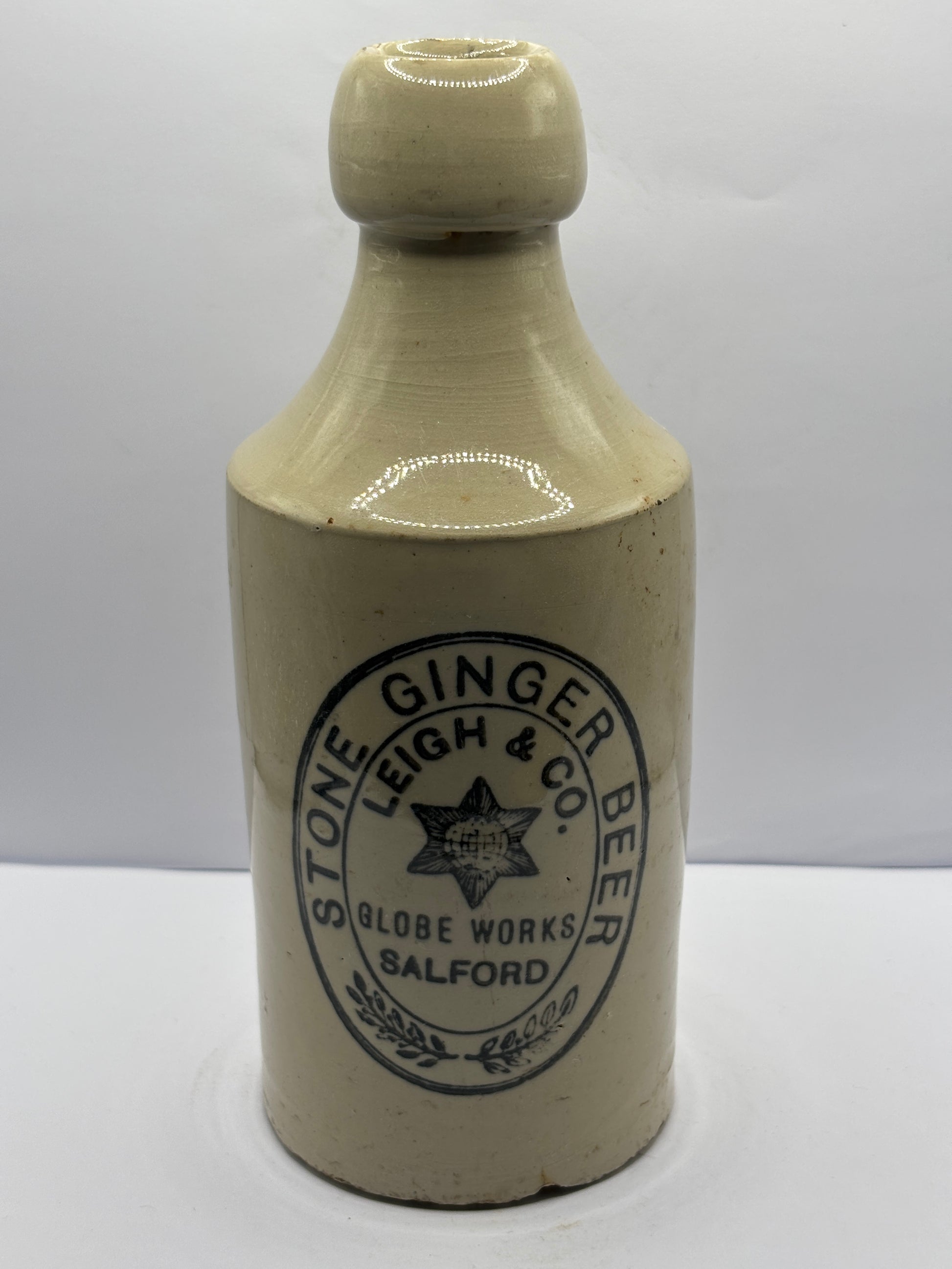 Old stoneware ginger beer bottle, Leigh & Co Salford