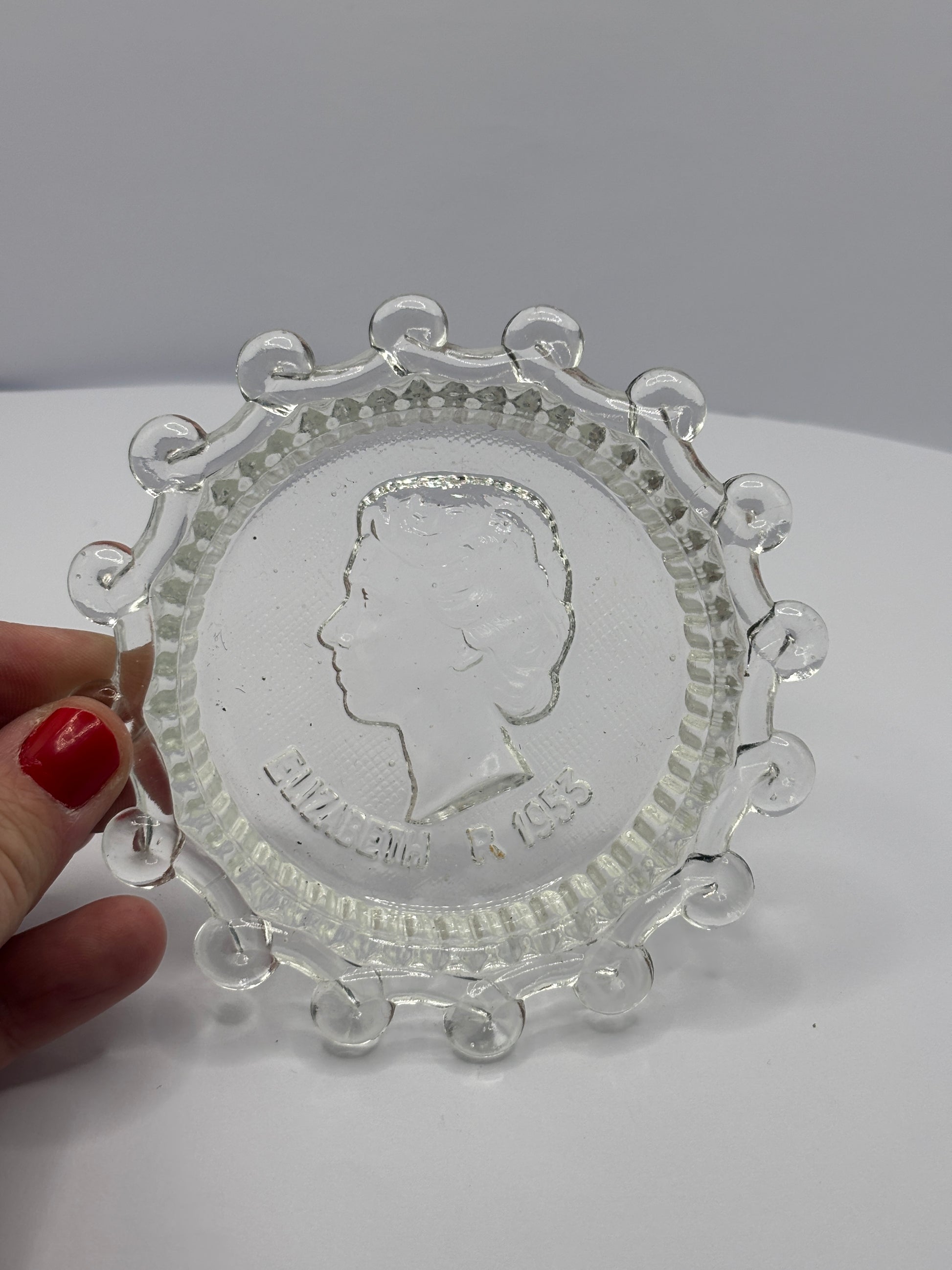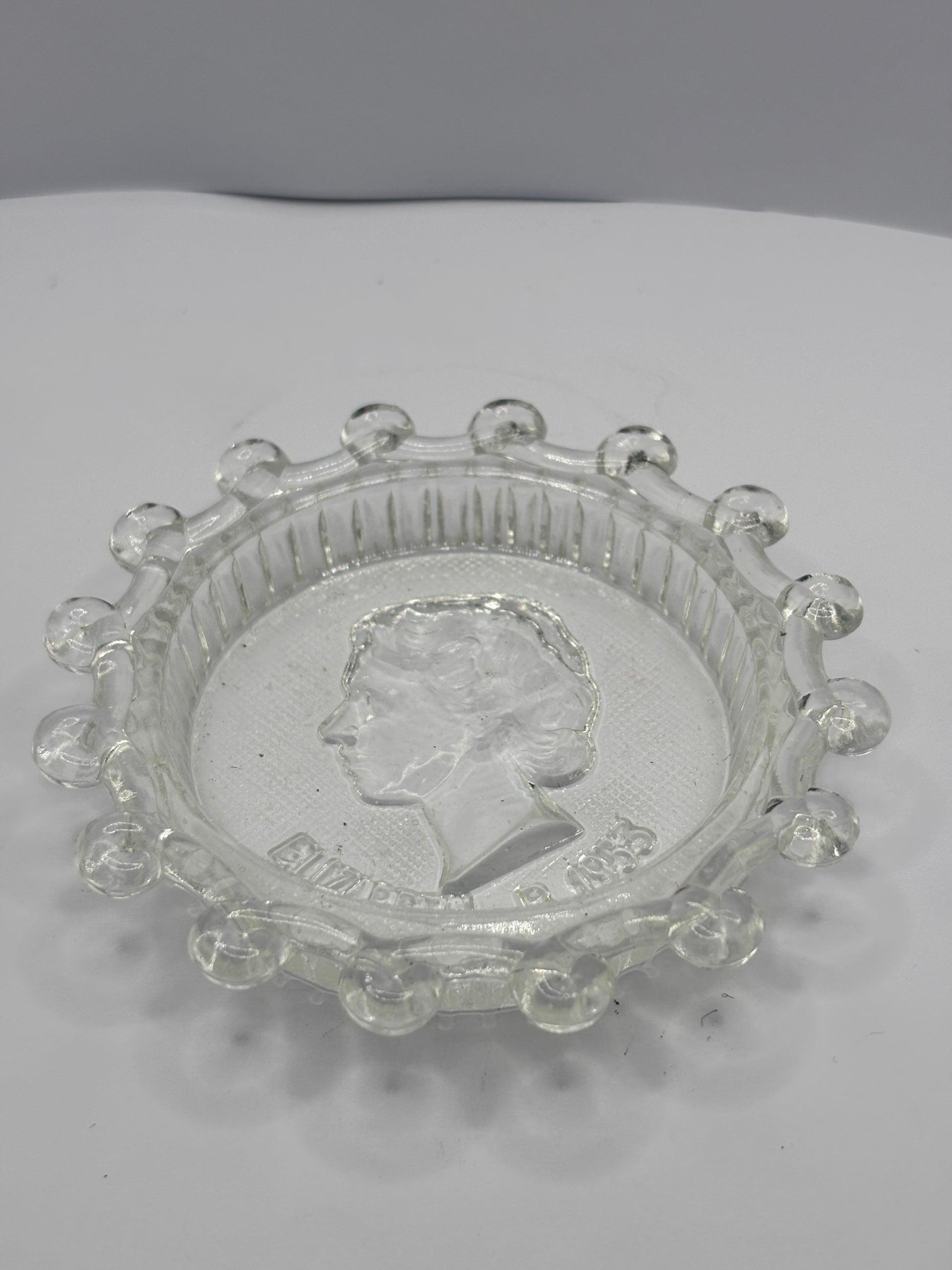 Vintage glass royalty dish/ash tray, Elizabeth